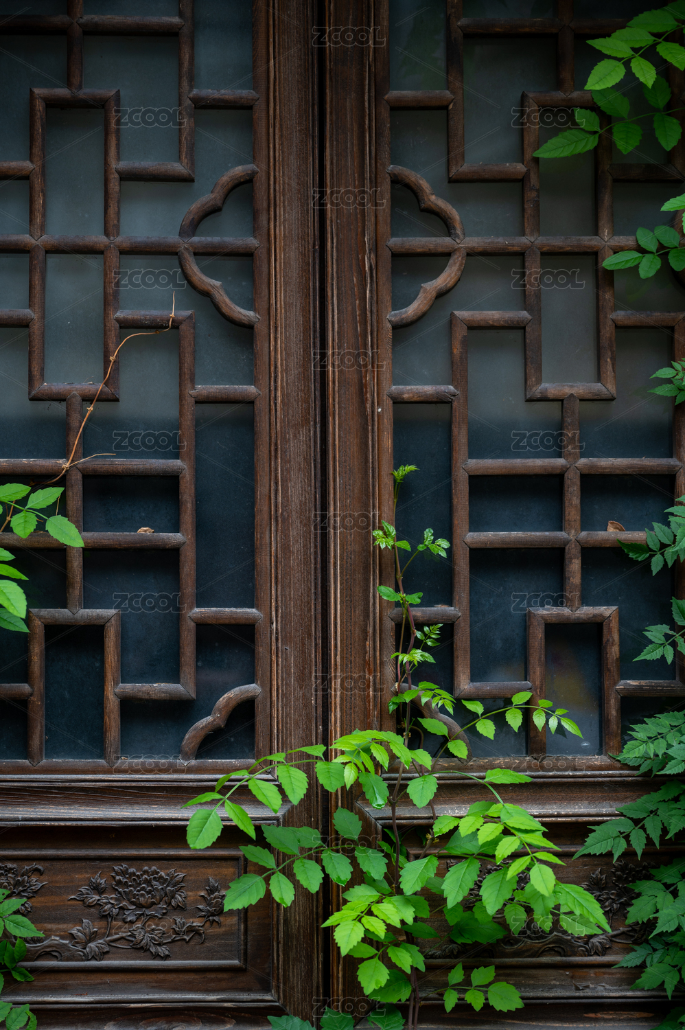 中式房屋外翠色的千层金依偎在黑瓦花窗旁