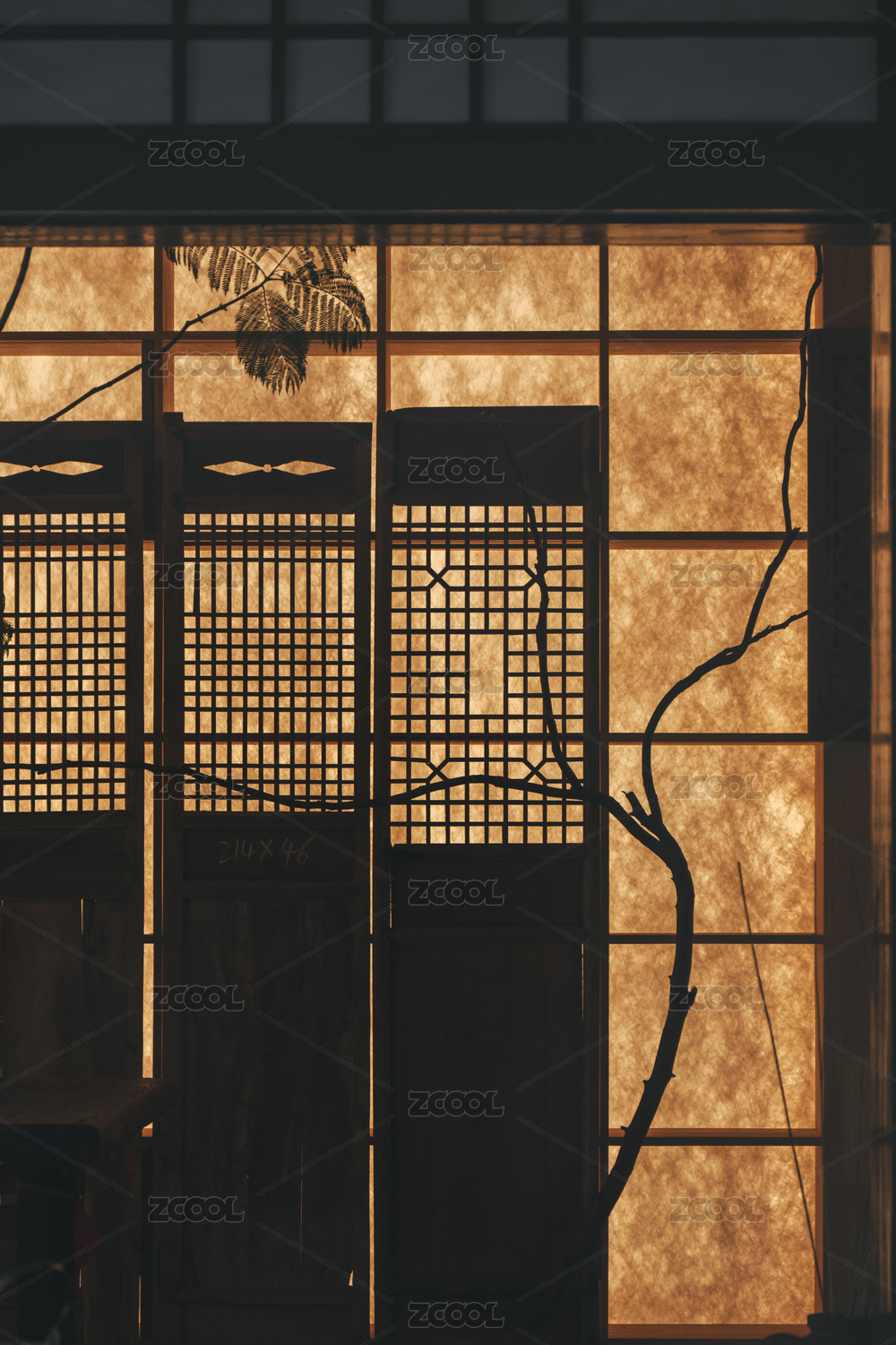 古典木制屏风剪影