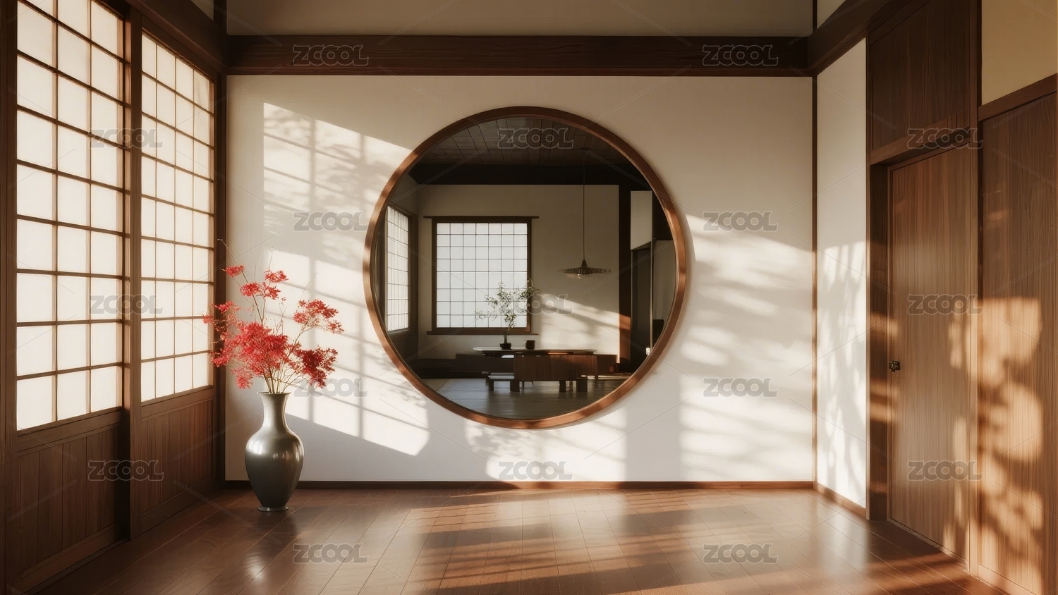 日式室内设计,圆形门洞与光影交错