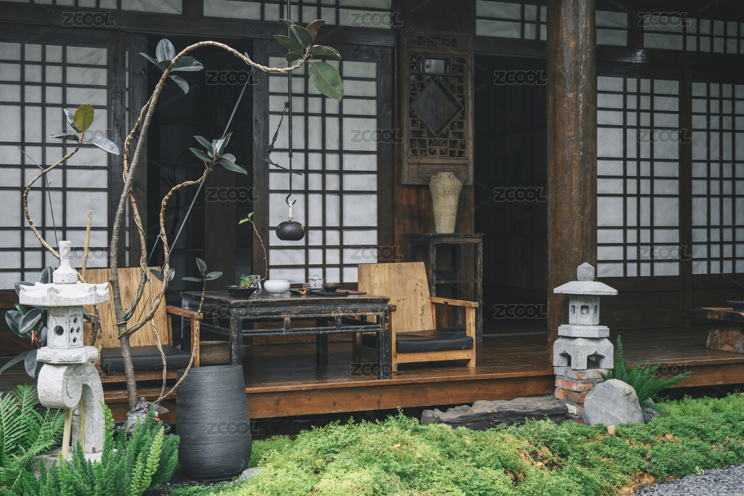中式古典日系园林庭院茶室