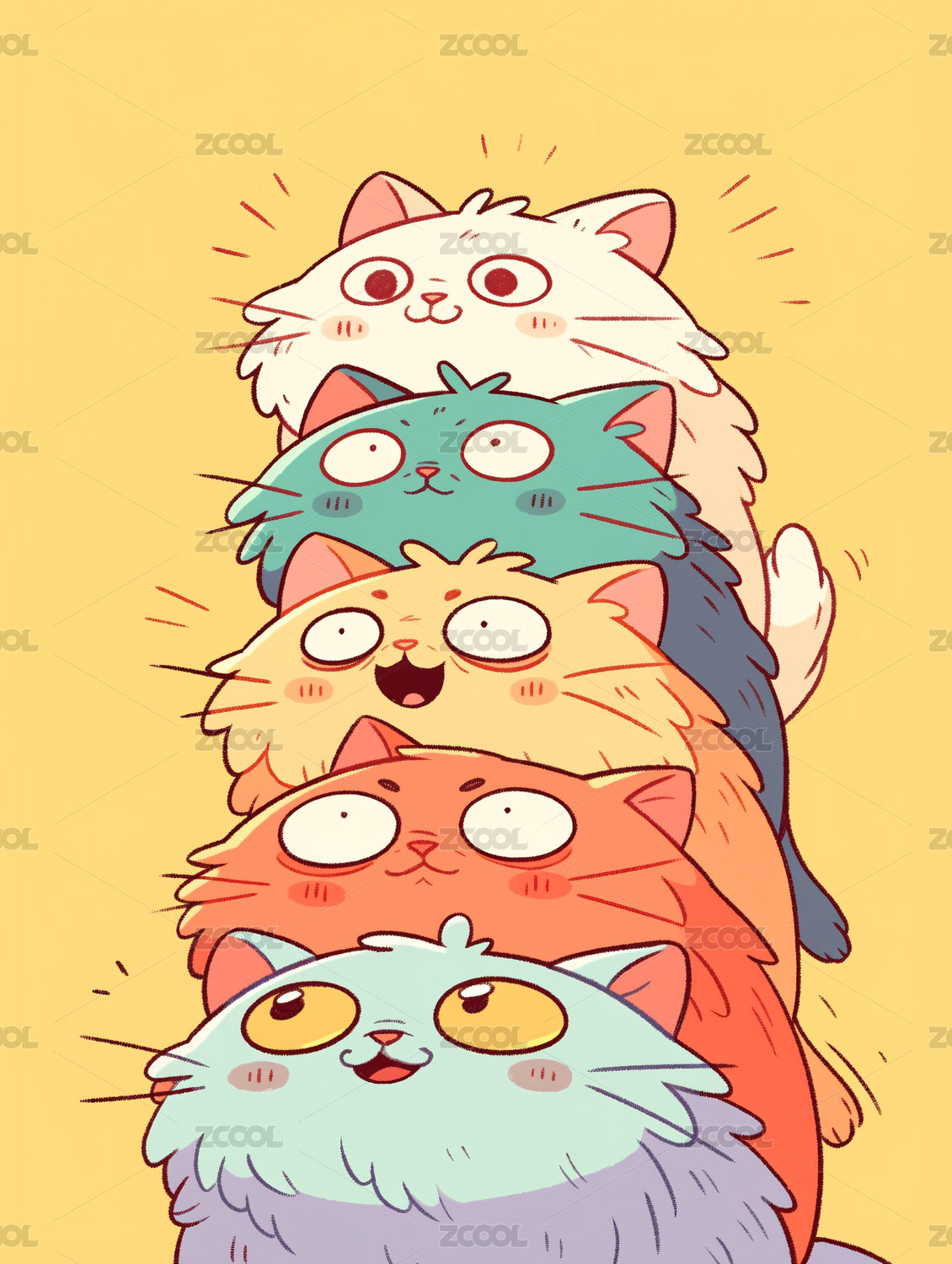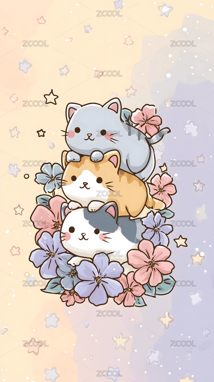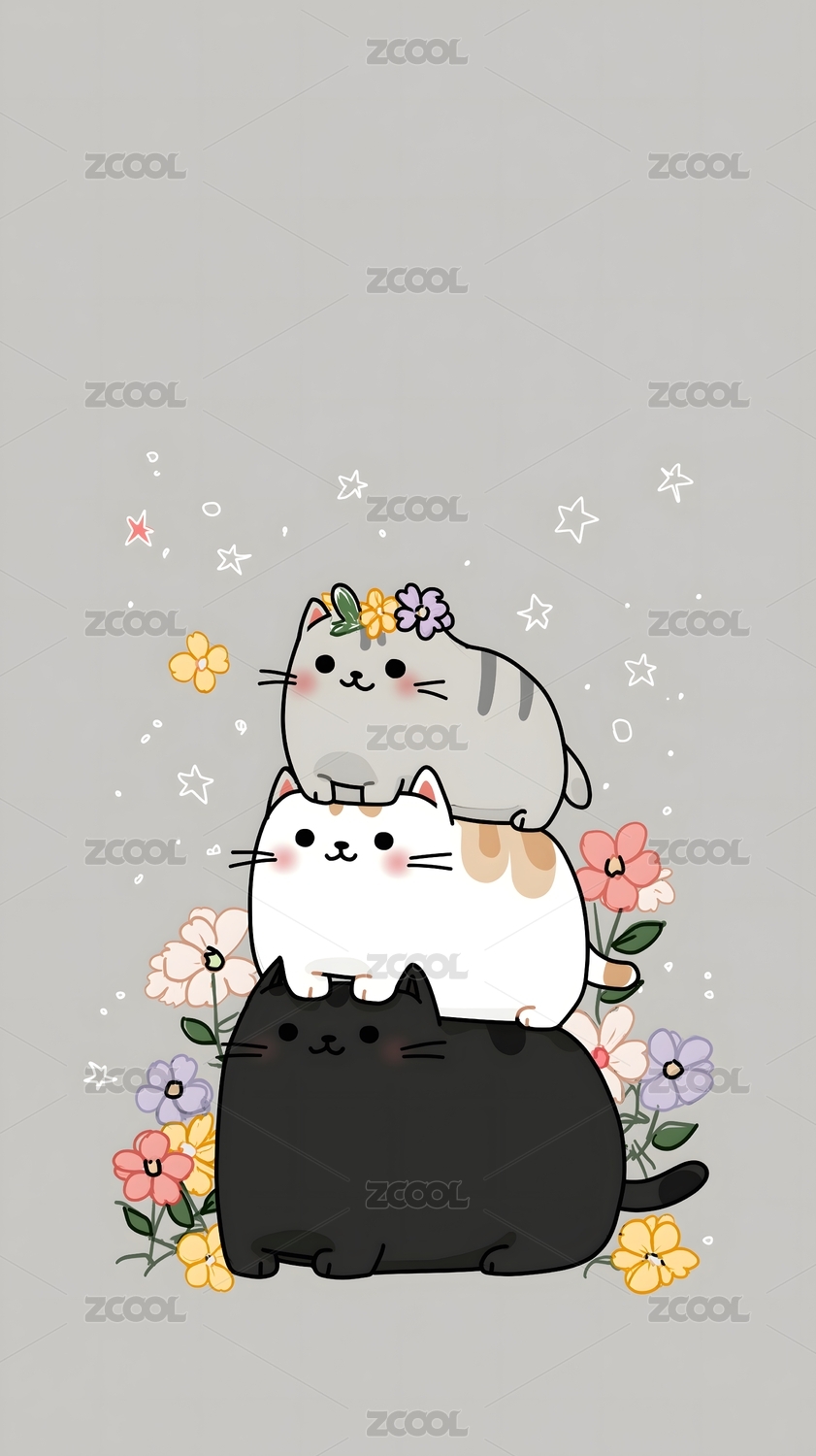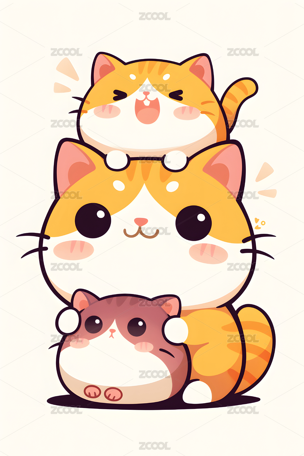 卡通叠叠猫插画