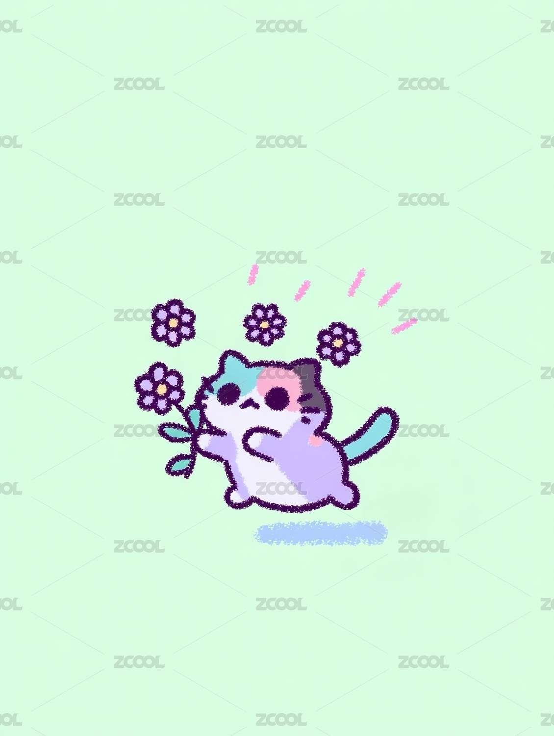 卡通可爱抱着花朵的小猫