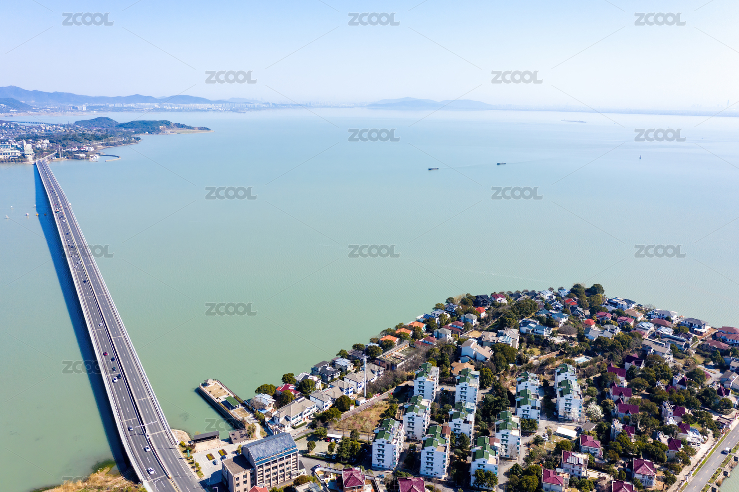 宁波宁海西店海上公路与城镇建筑航拍风景