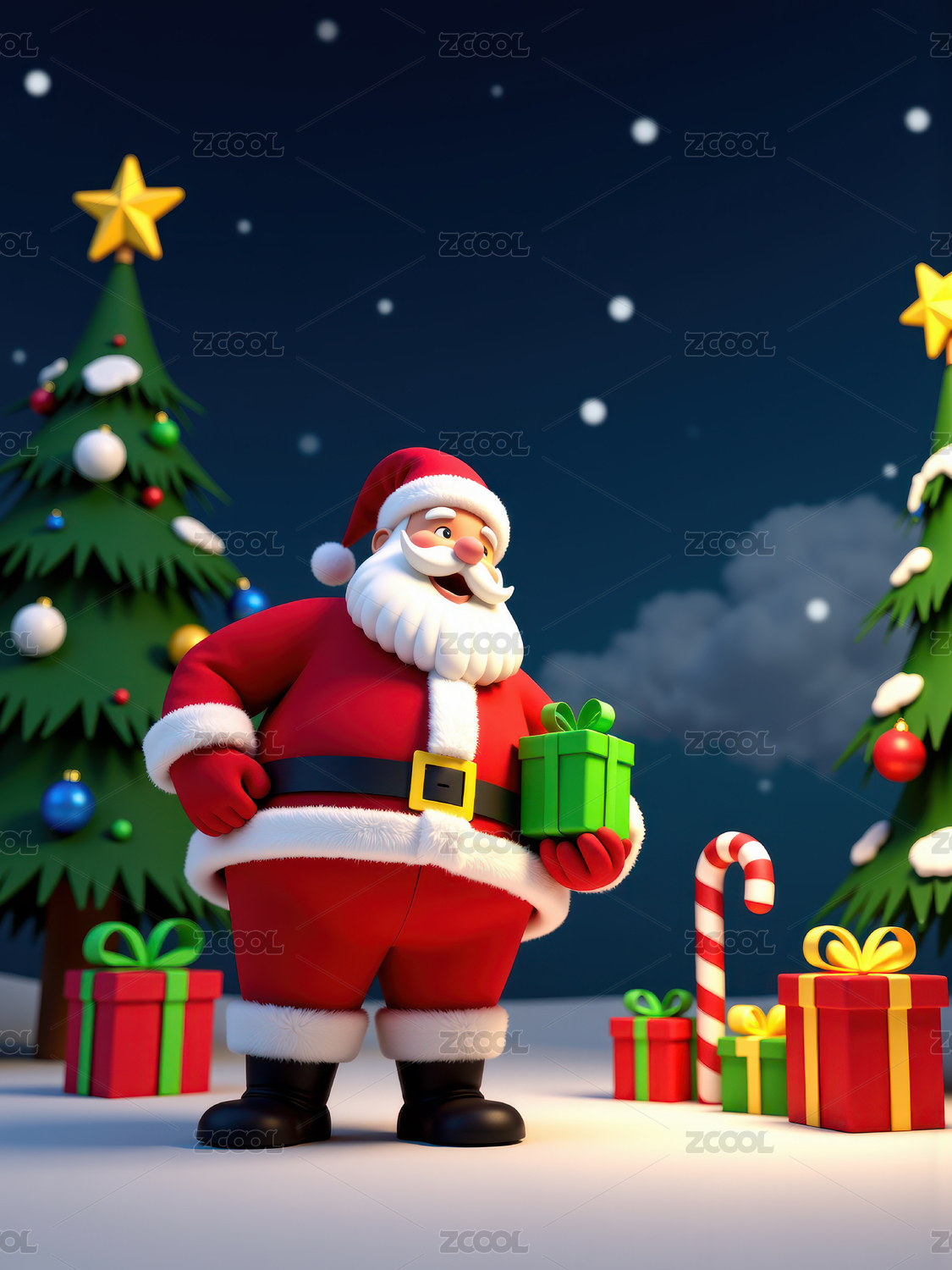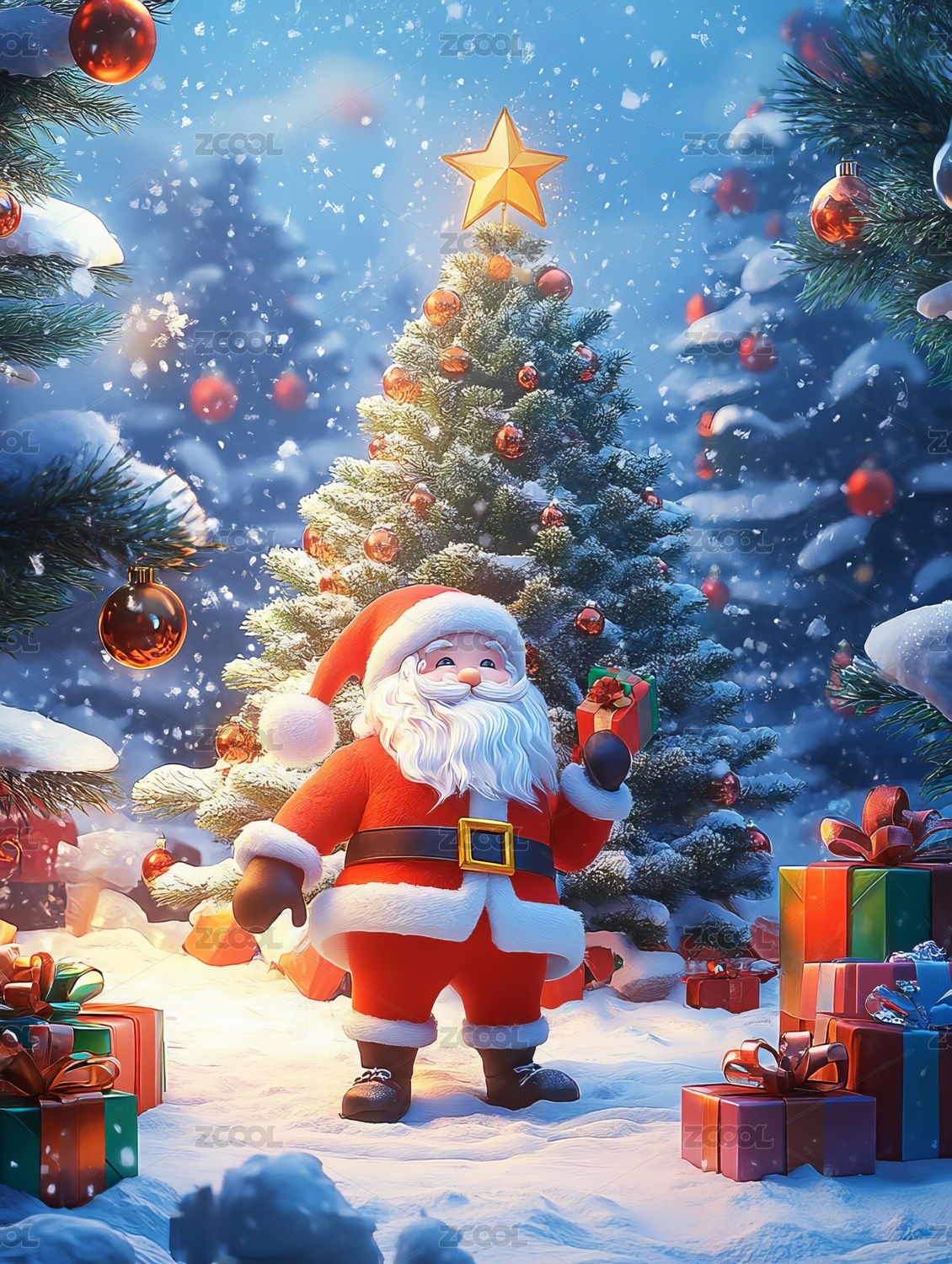3D唯美的圣诞场景圣诞树和圣诞老人