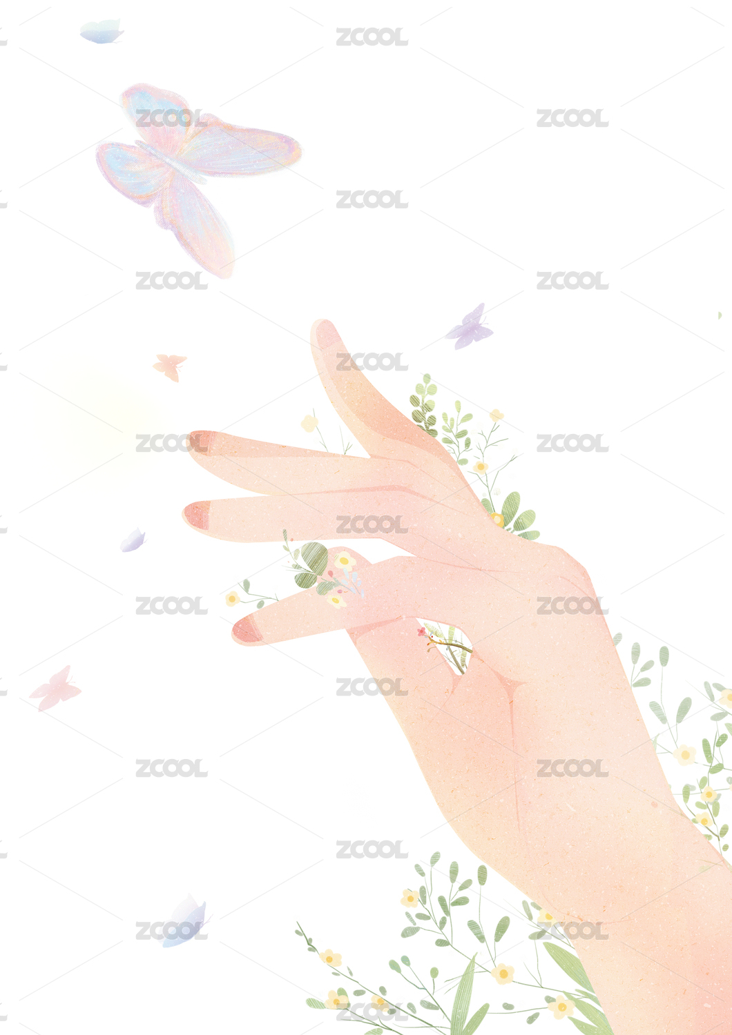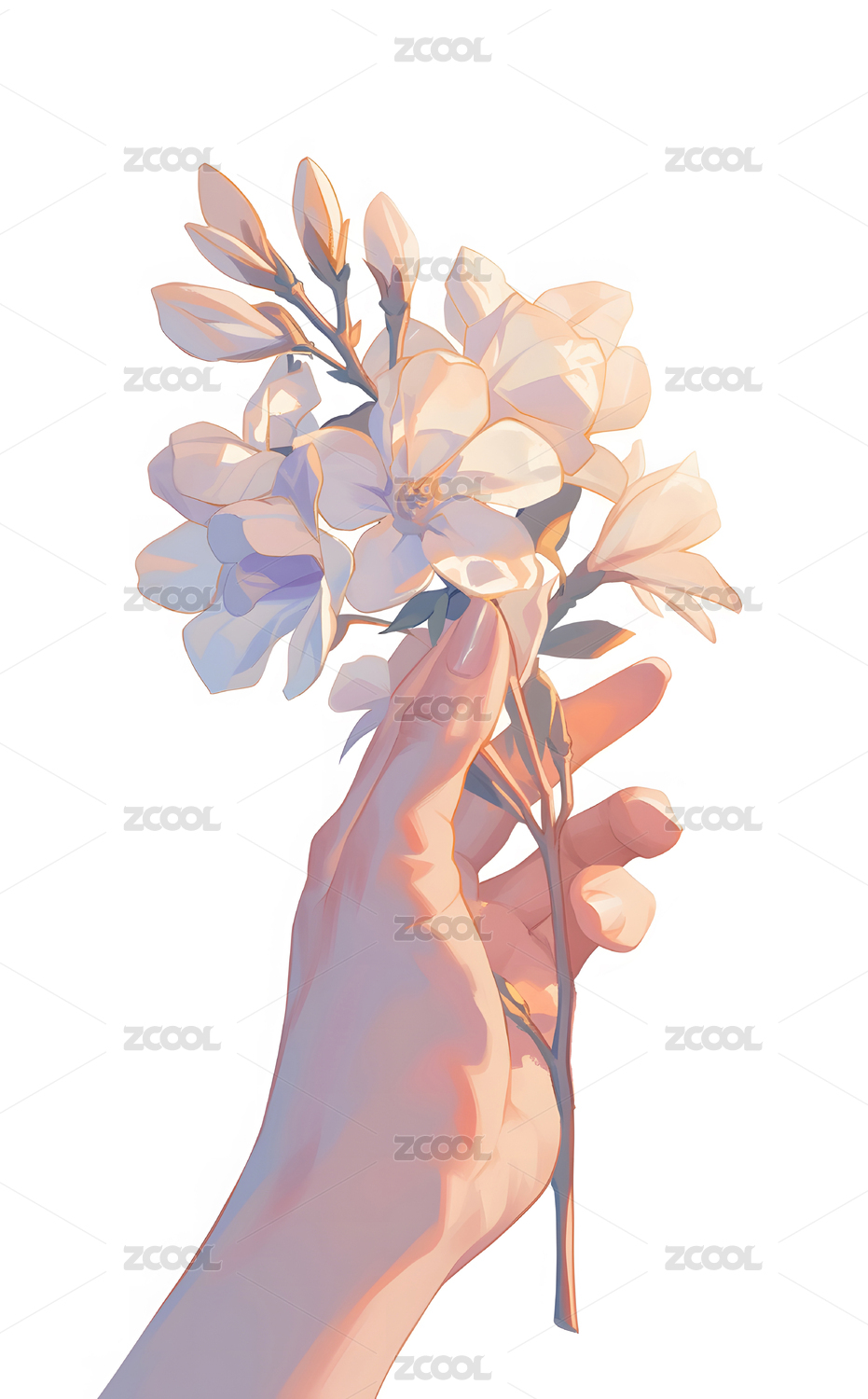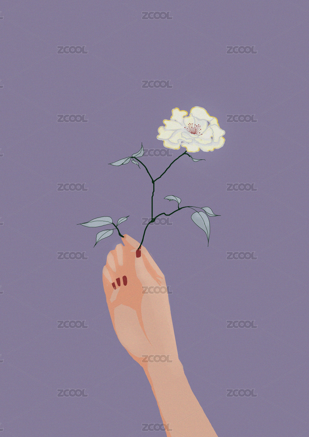 左手拿着一束文艺风格的植物 水彩手绘插画