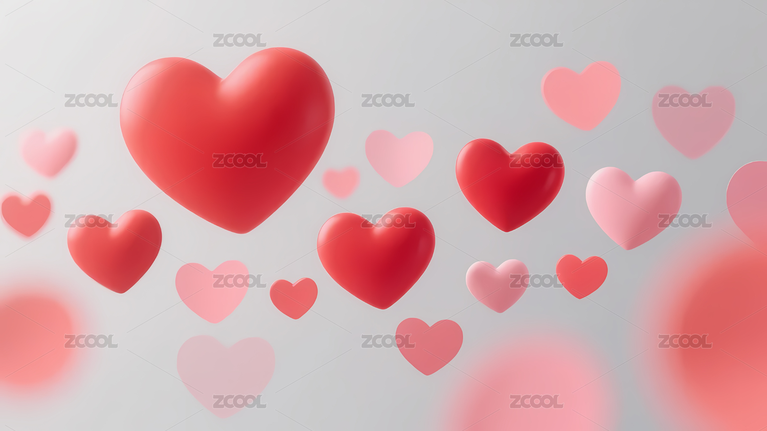 金属材质的彩色爱心桃悬浮在简洁背景上