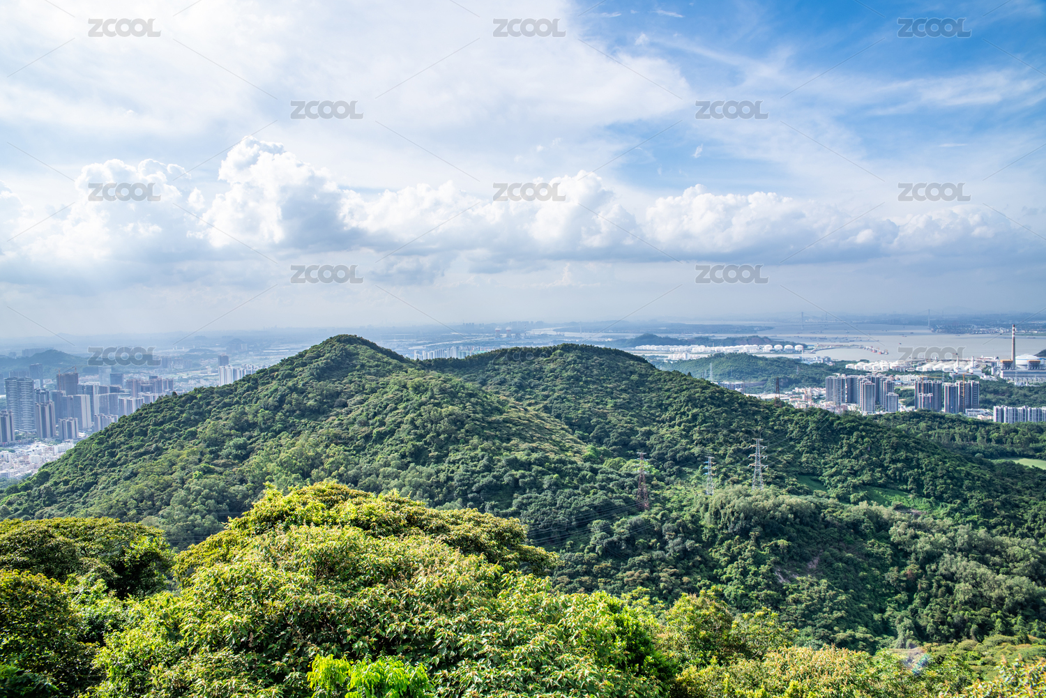 半山半城/羊台山森林公园山景风光和深圳城市高楼