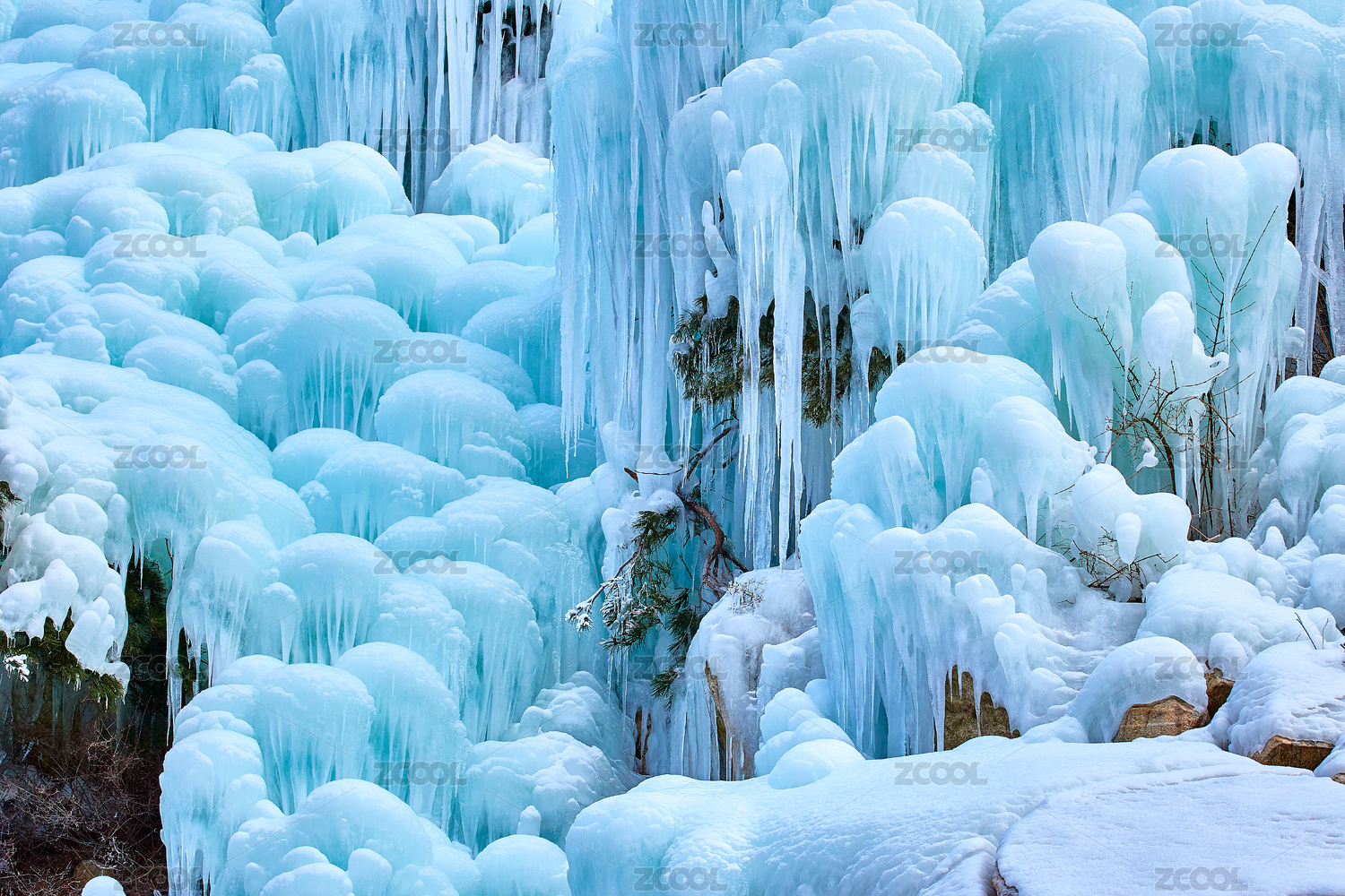 中国山东省枣庄市山亭区悬崖上的冰挂