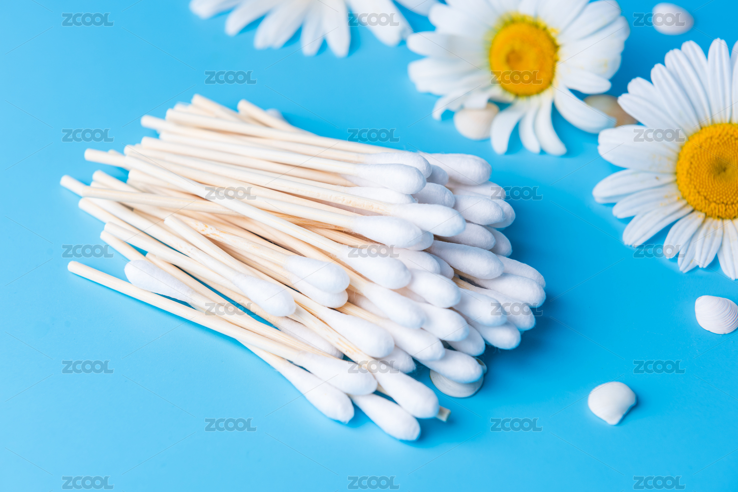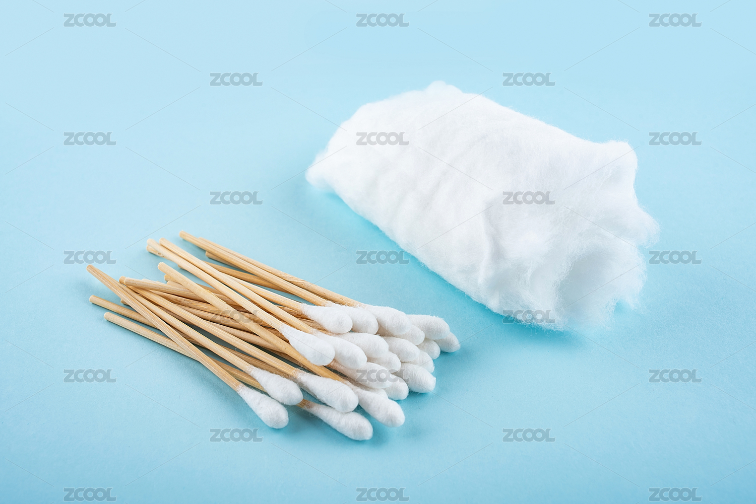 蓝色背景上的棉签