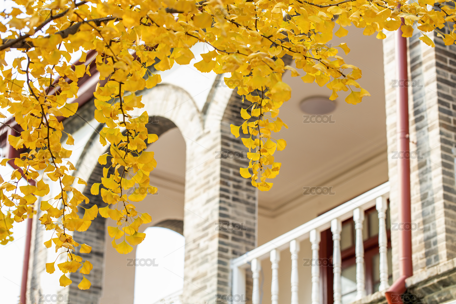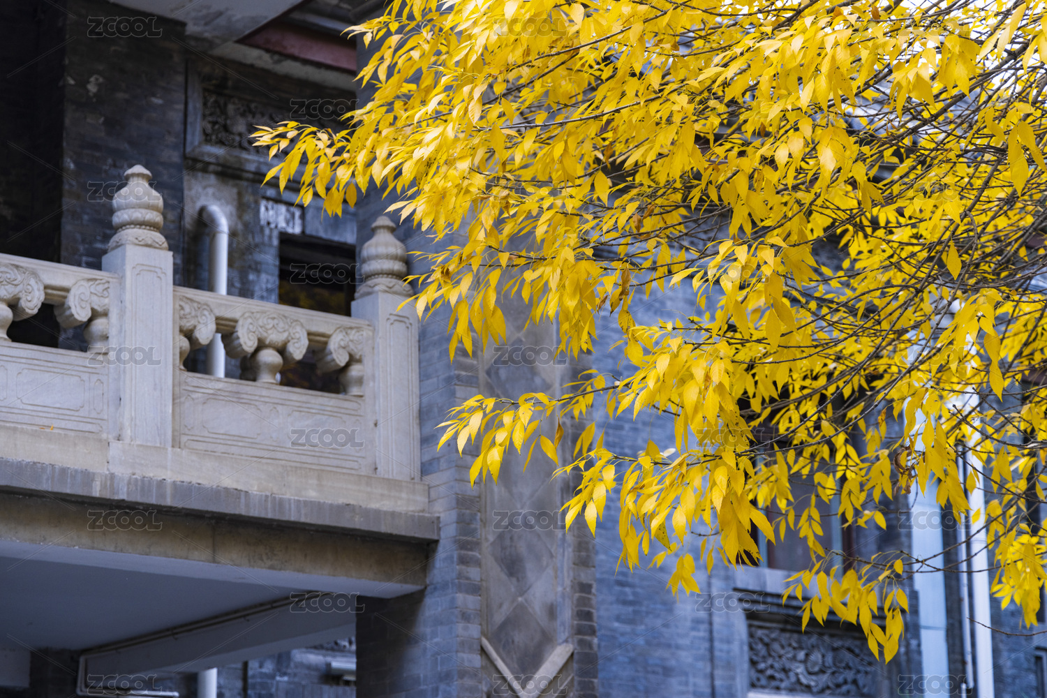 城市风光,户外,白昼,自然,宁静,西洋建筑,拱形窗,木护栏,尖顶建筑,银杏树