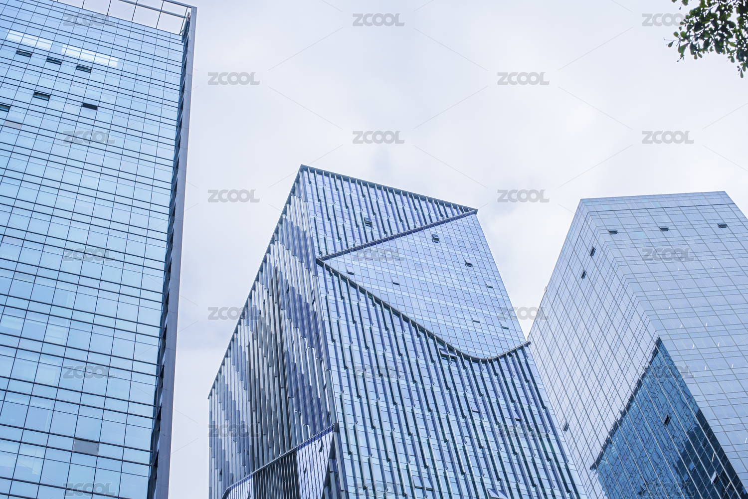仰拍的城市CBD办公楼玻璃幕墙