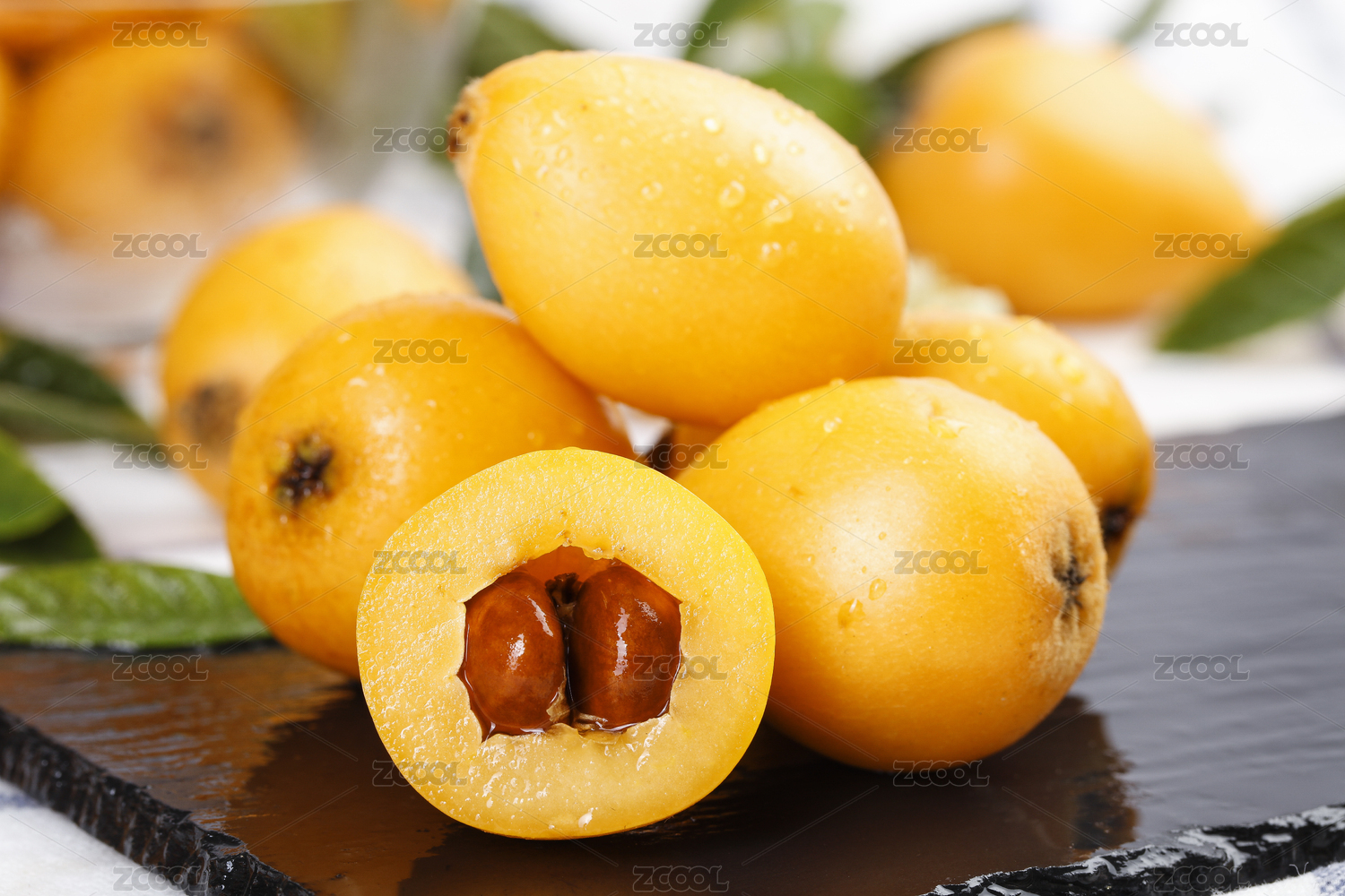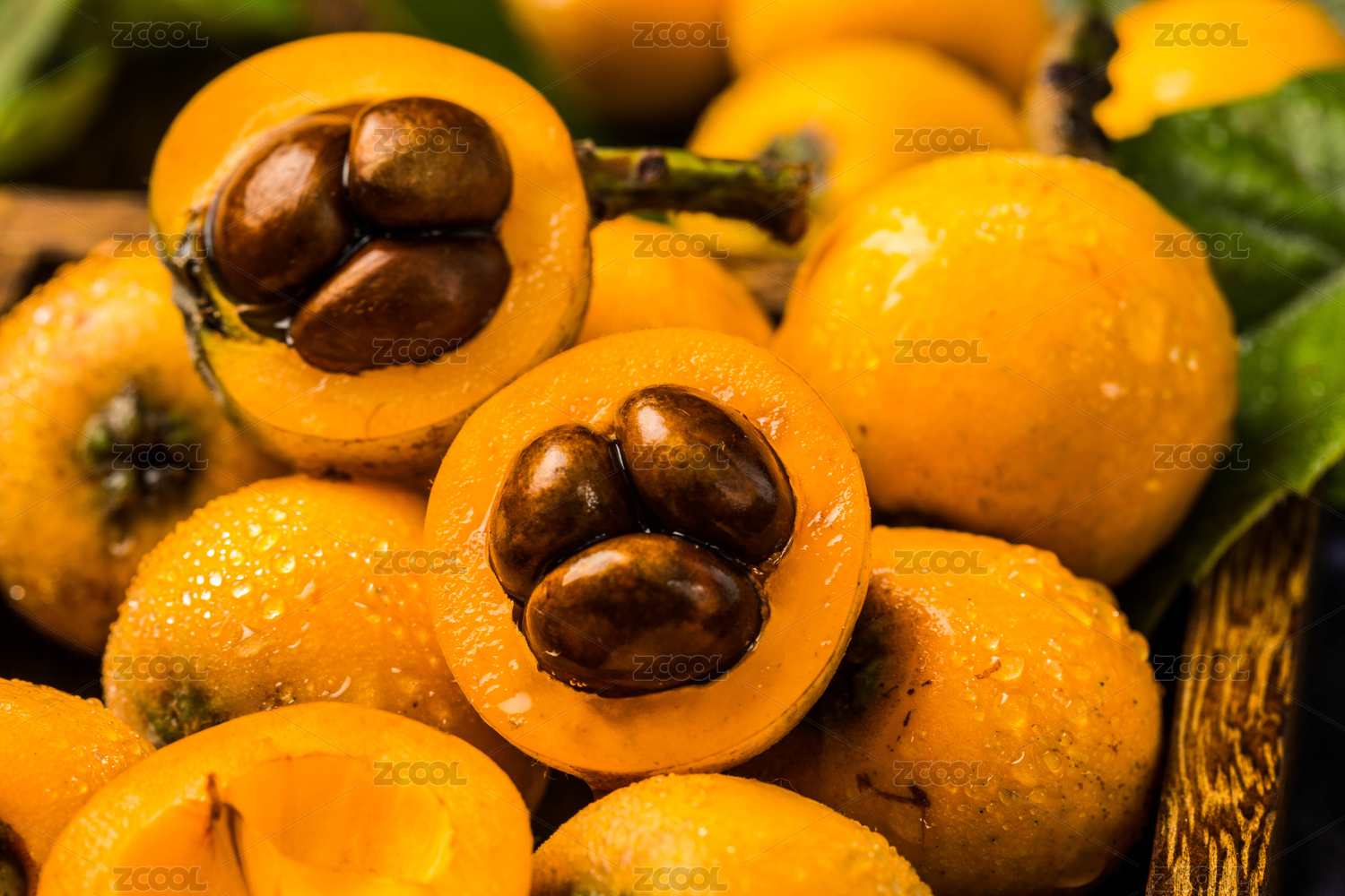 黑底上放着一堆蒙自枇杷和枇杷果肉