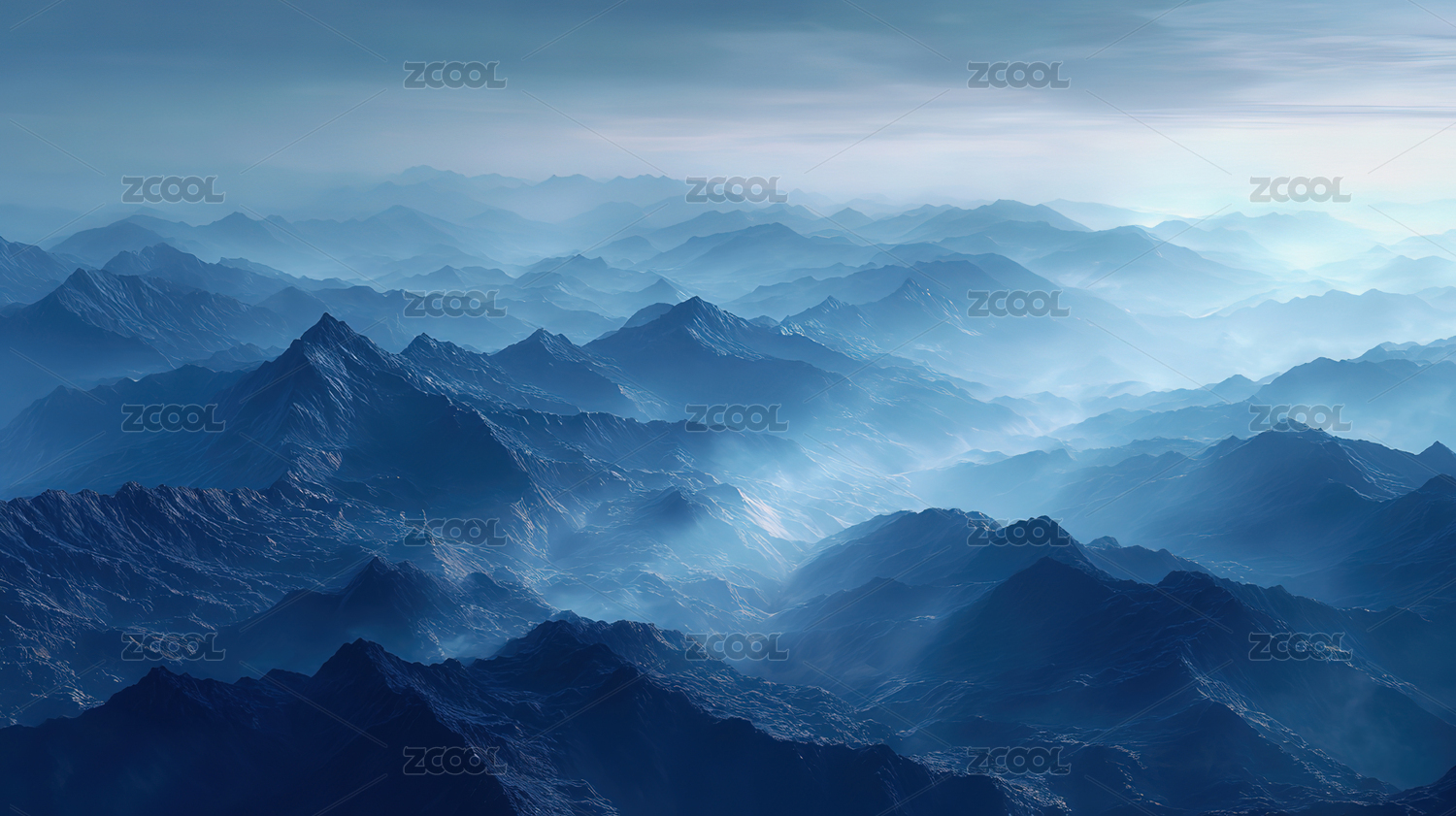 梦幻蓝色层叠山脉风景