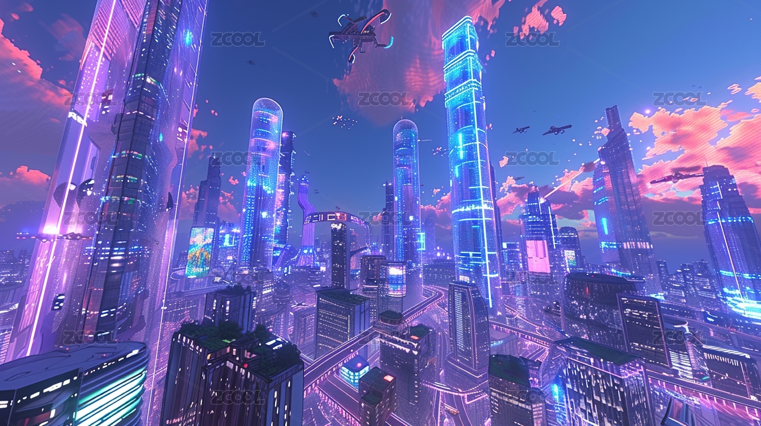 建筑,冷色调,灯光效果,视觉,动态,创新,模型,抽象,材质,科技感