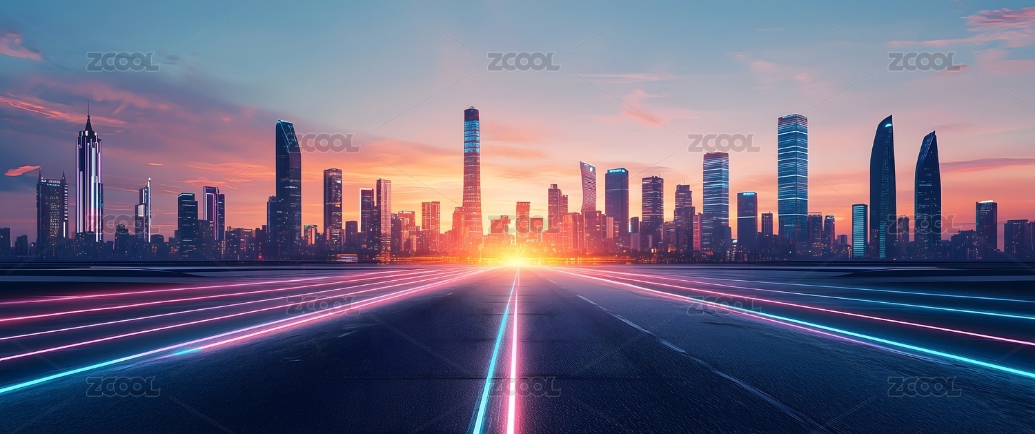 五彩缤纷的天际线发光道路多彩城市生活概念