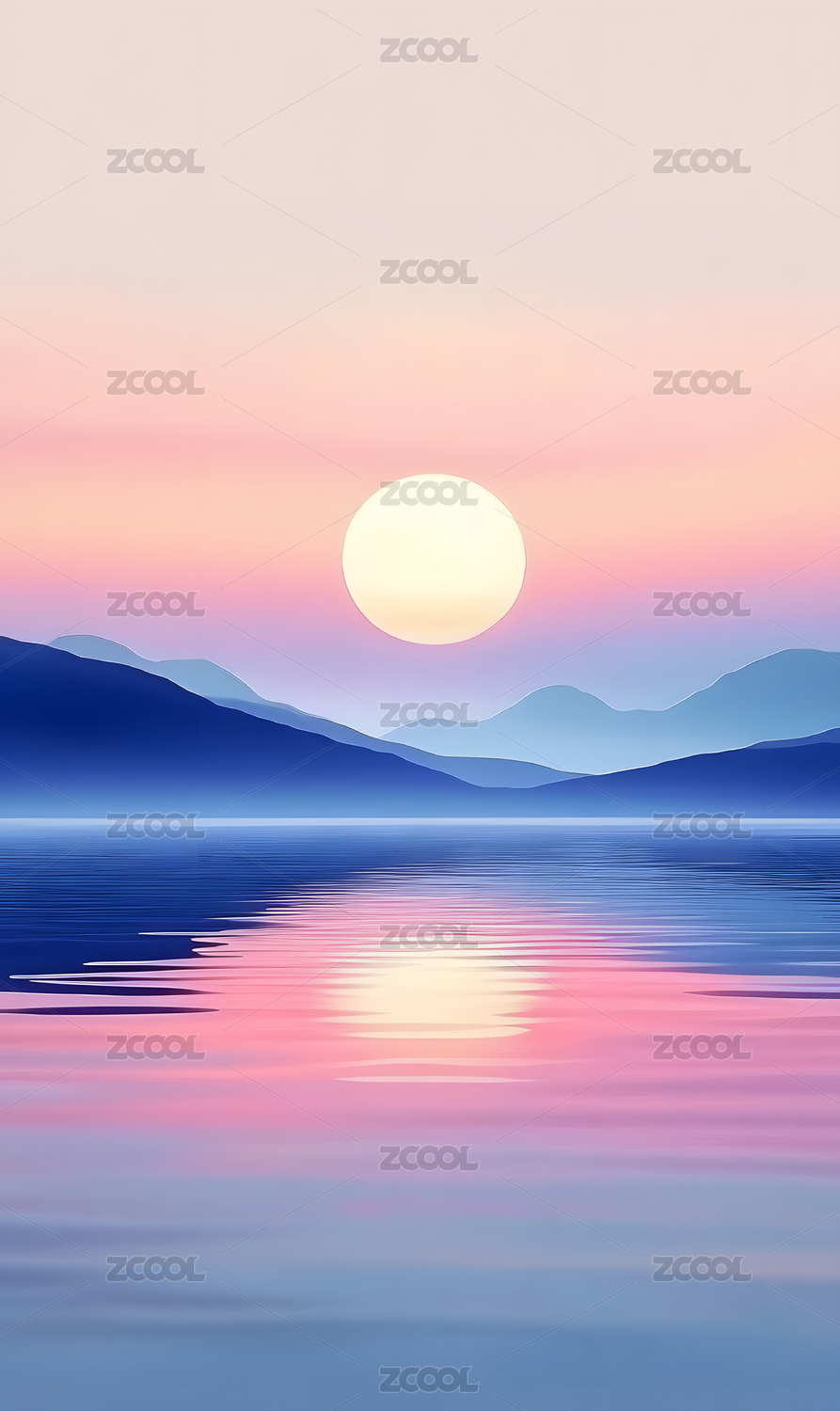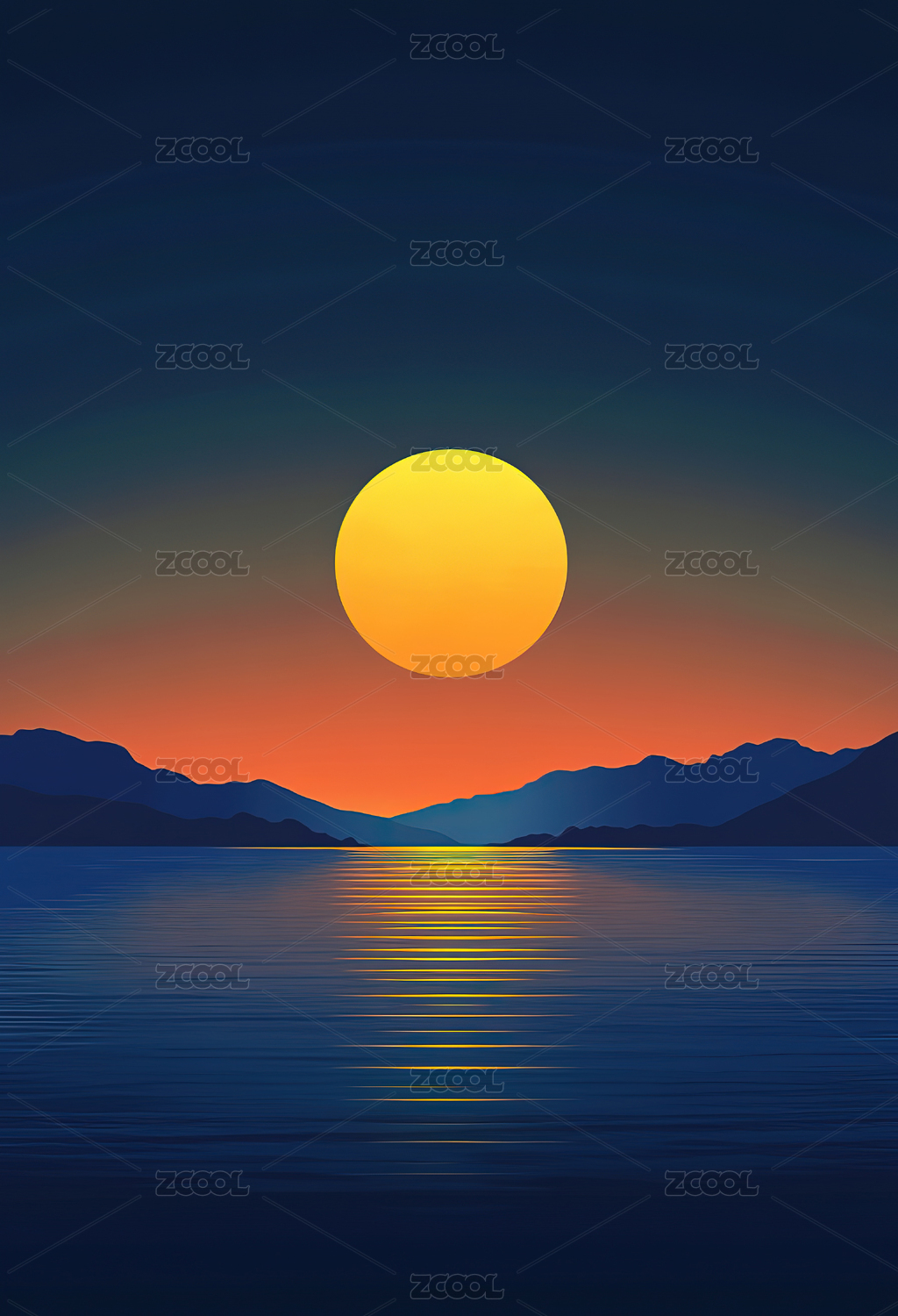 宁静夜色下的湖面红日,星光点缀的迷人景观