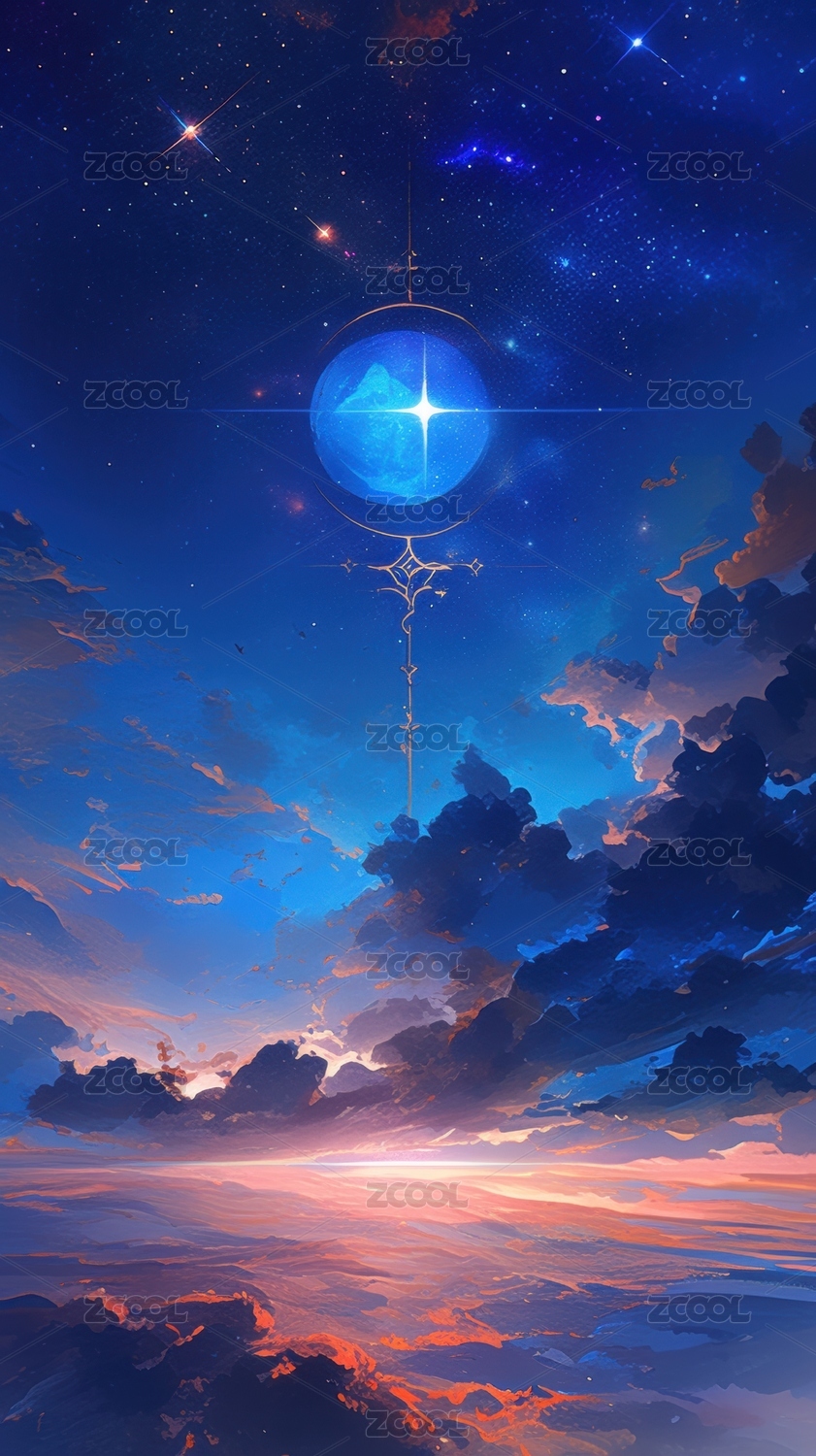手绘唯美的抽象艺术感夜晚天空风景插画