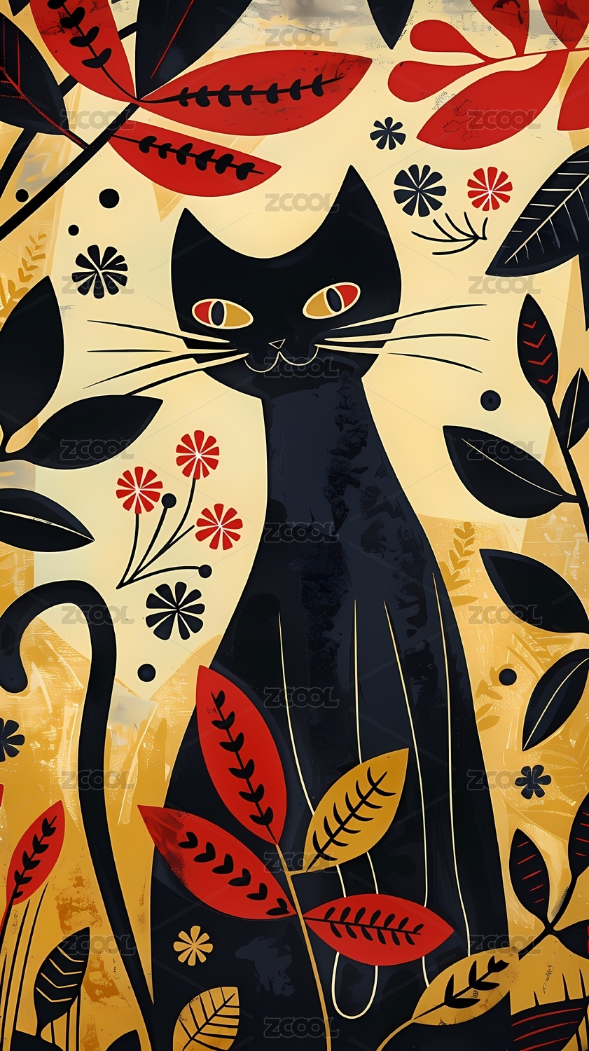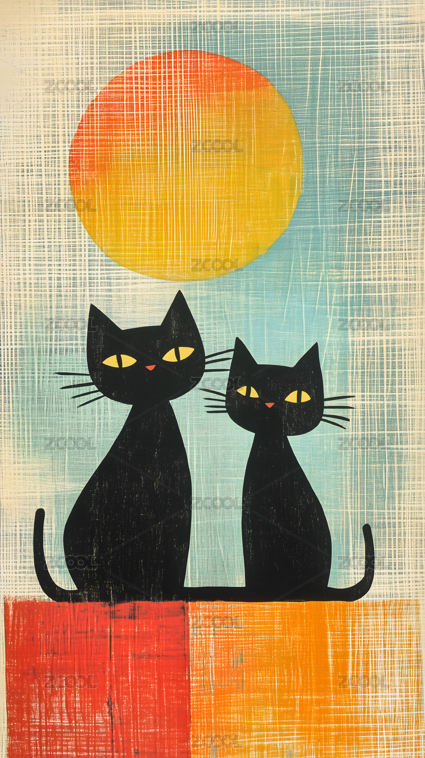 现代彩色猫猫油画插画背景海报抽象装饰画
