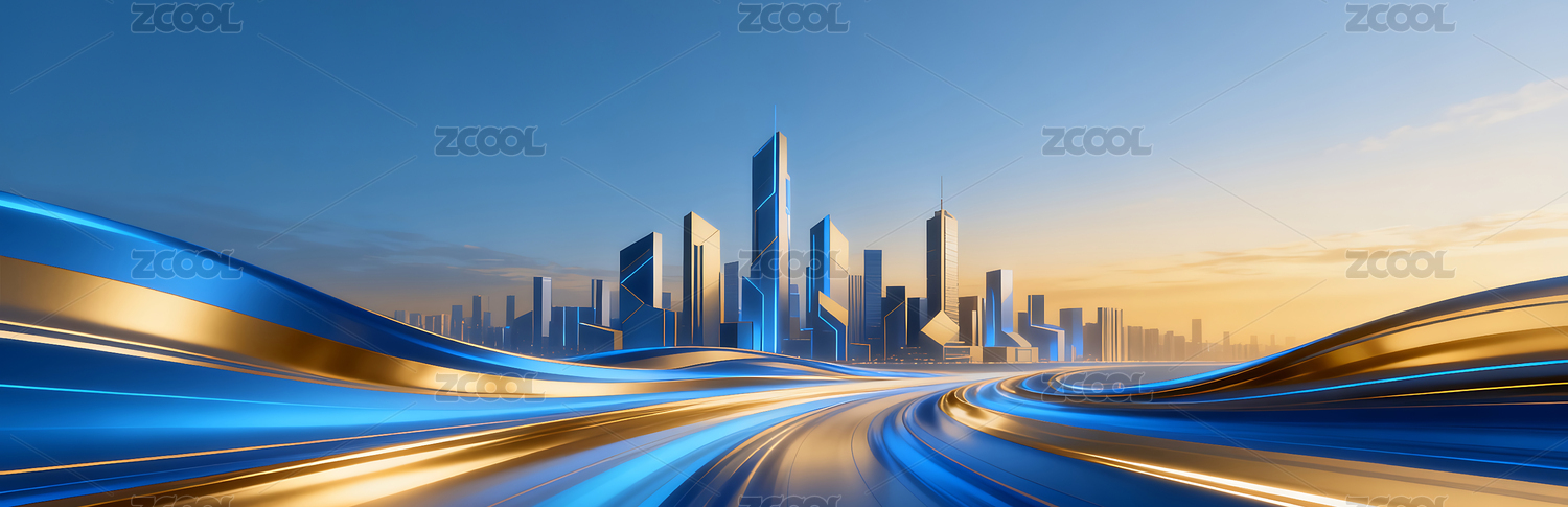 商务科技蓝金色流动城市建筑主视觉背景