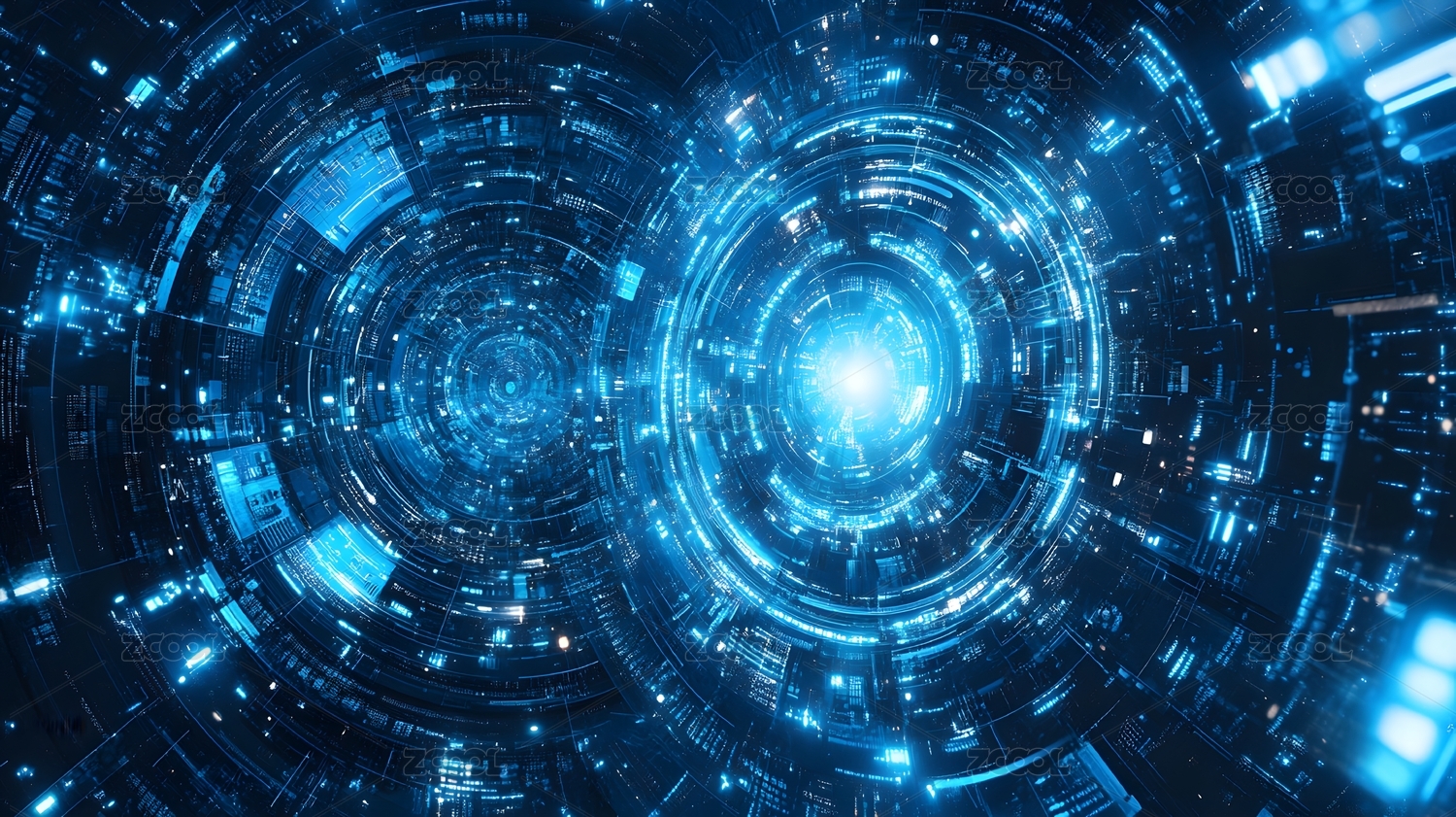 数码,科技,抽象,未来主义,蓝色,发光,圆形,隧道,赛博朋克,数据