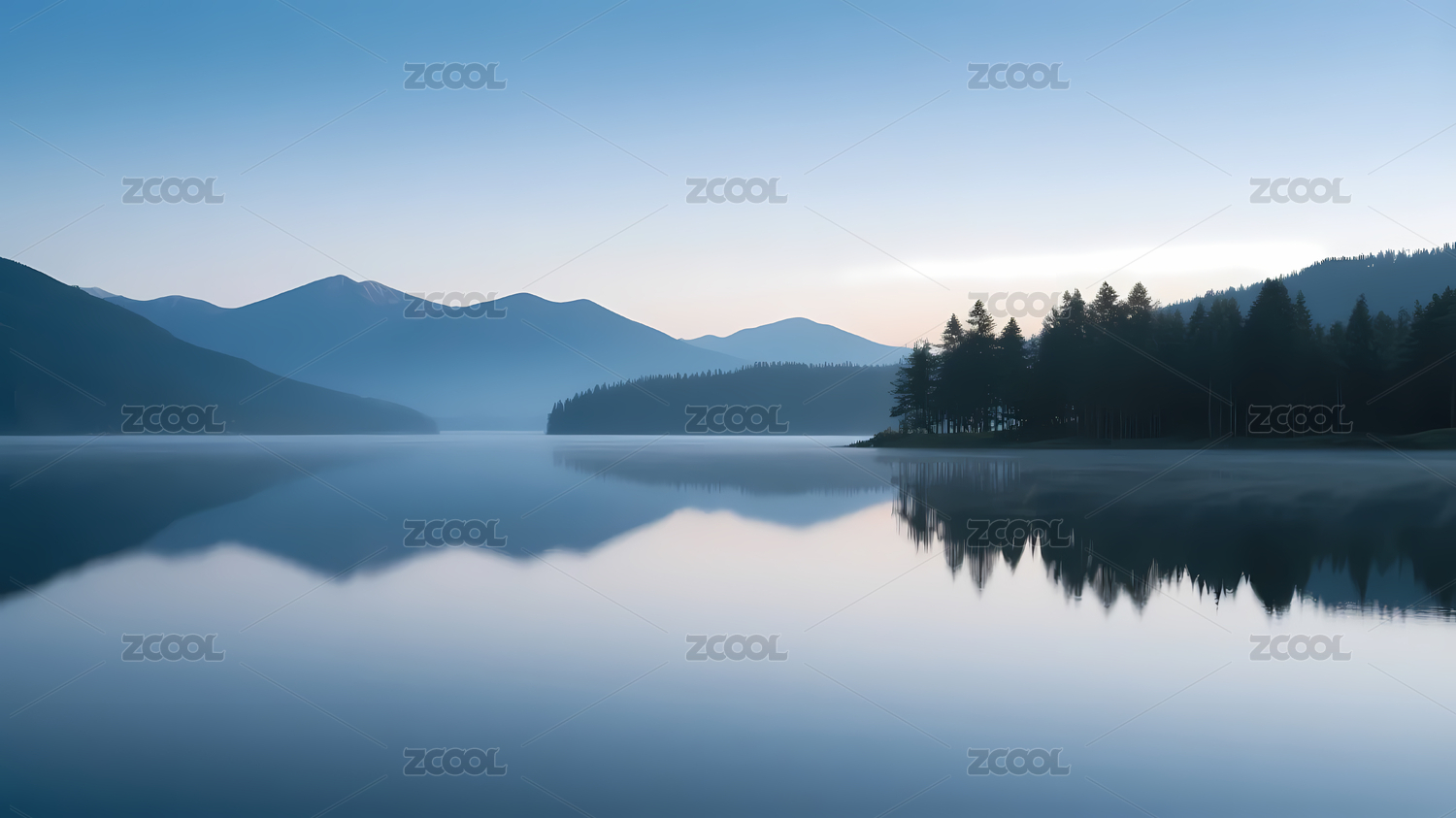 宁静湖泊山峦自然风光