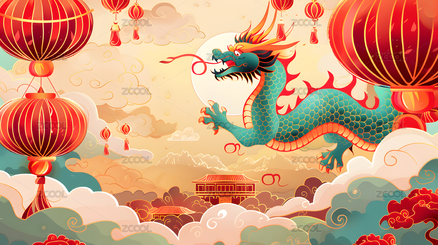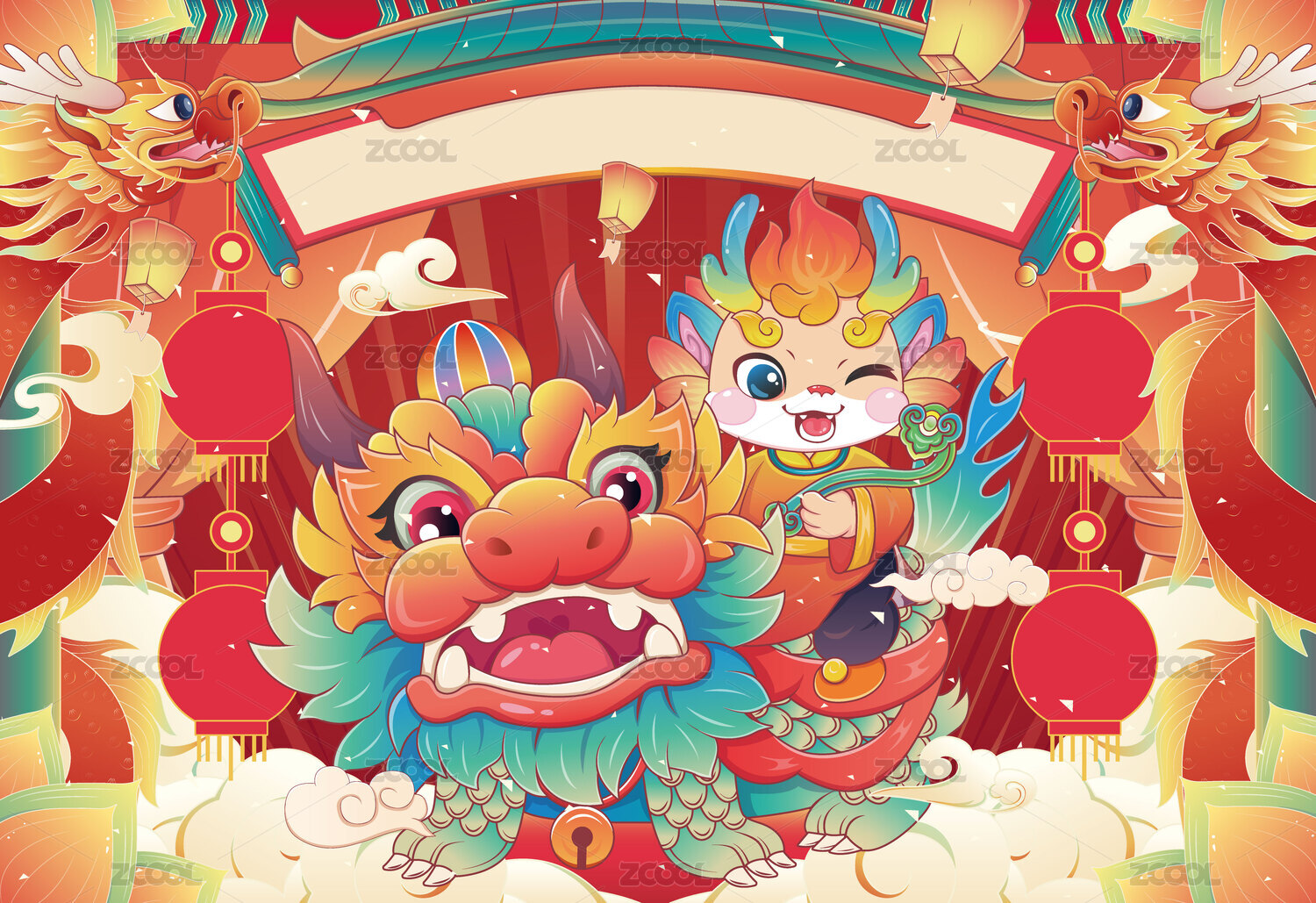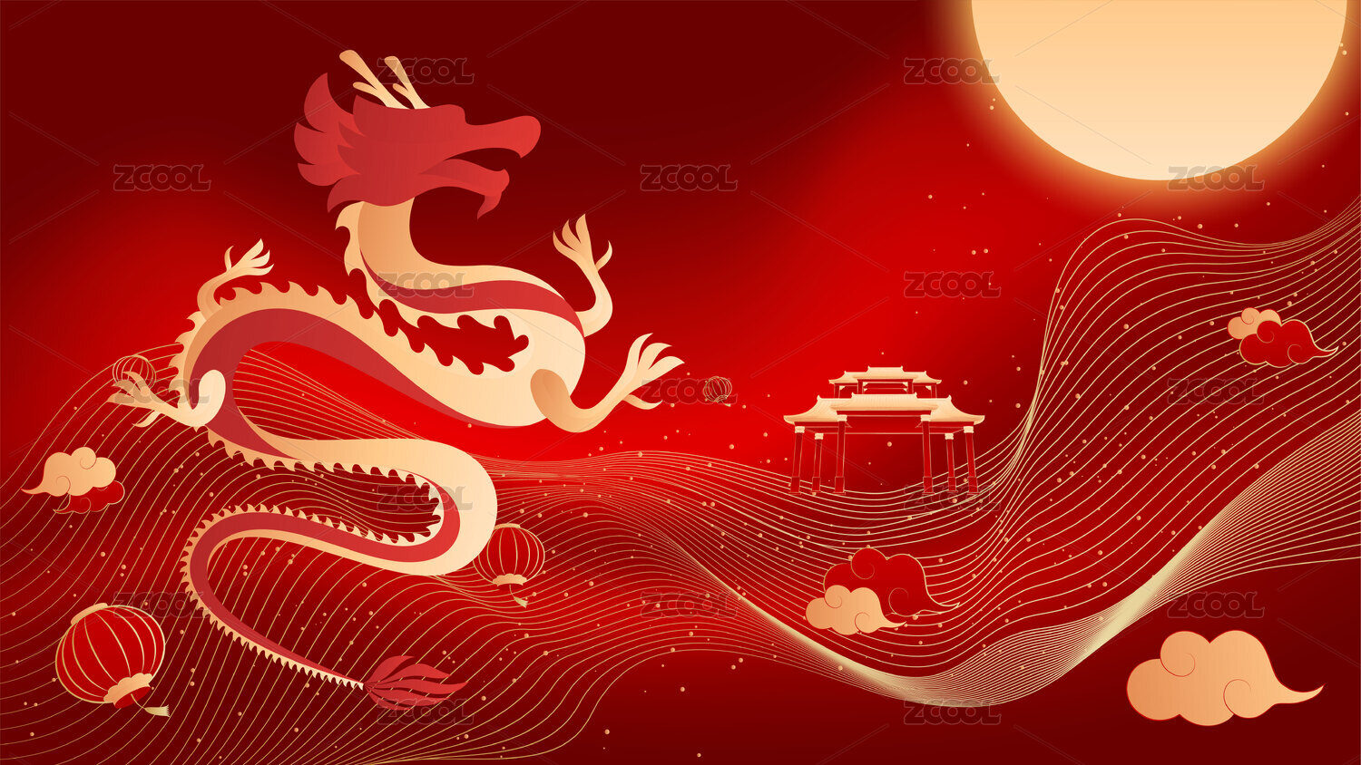 新中式潮流矢量龙年新年氛围图