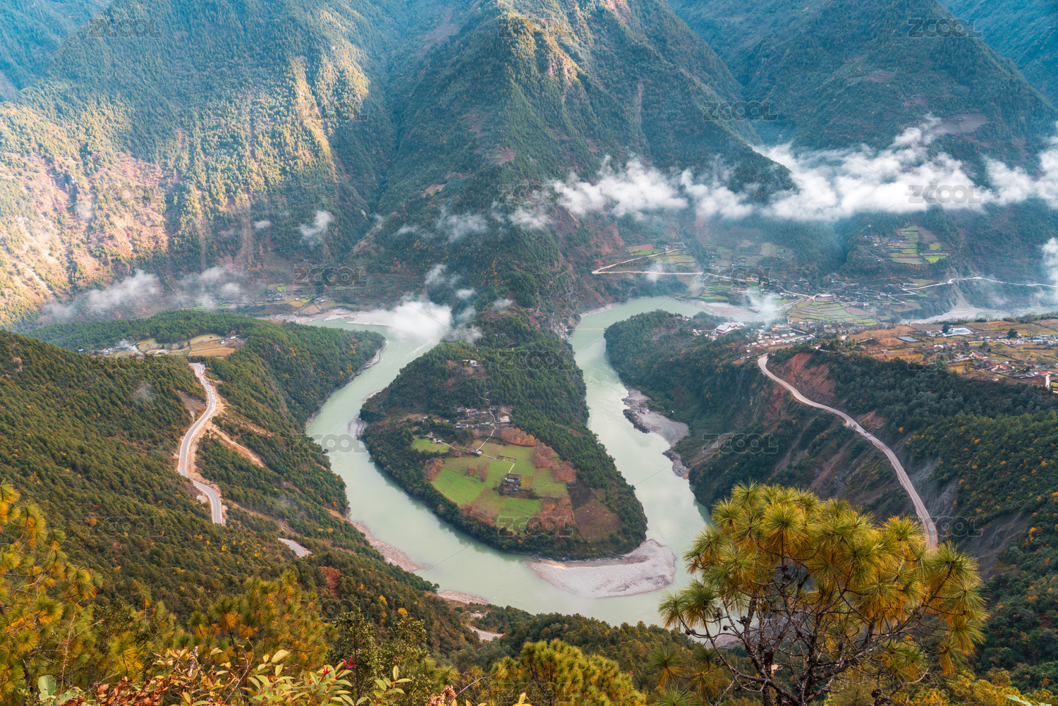 云南贡山丙中洛G219怒江第一湾航拍风景