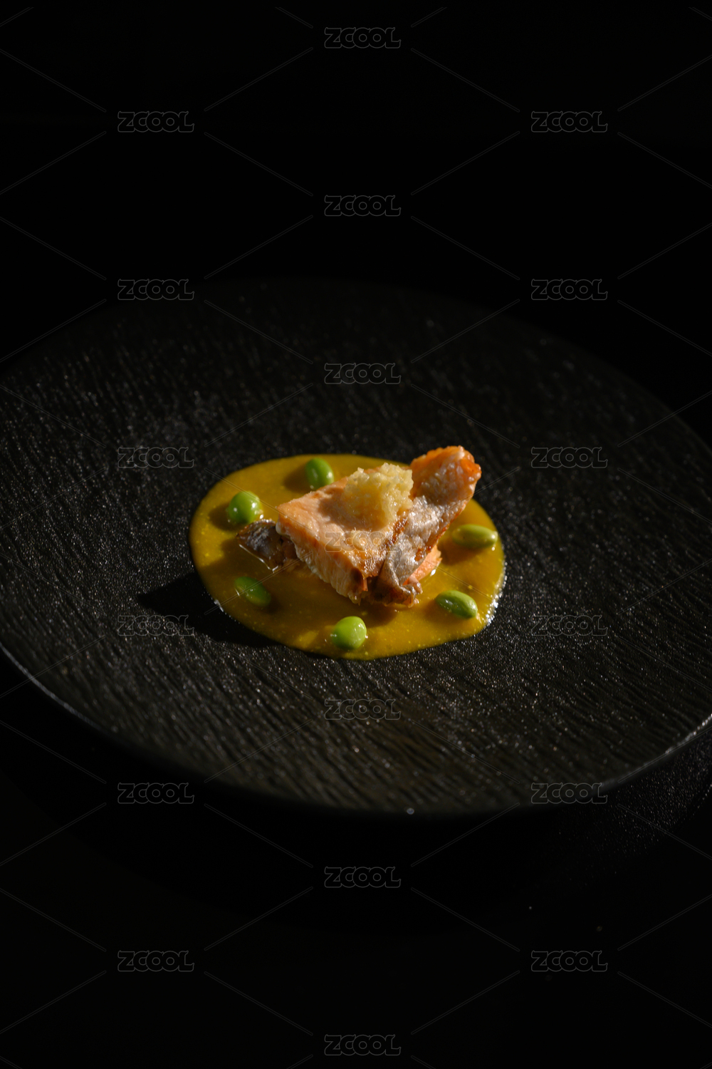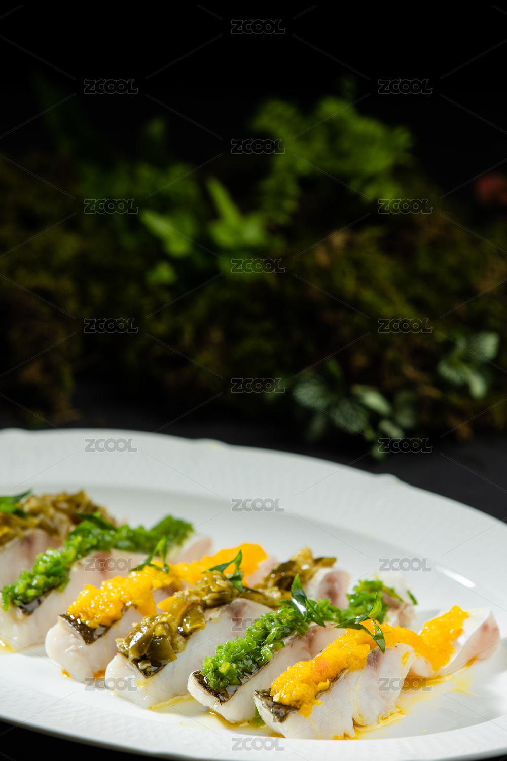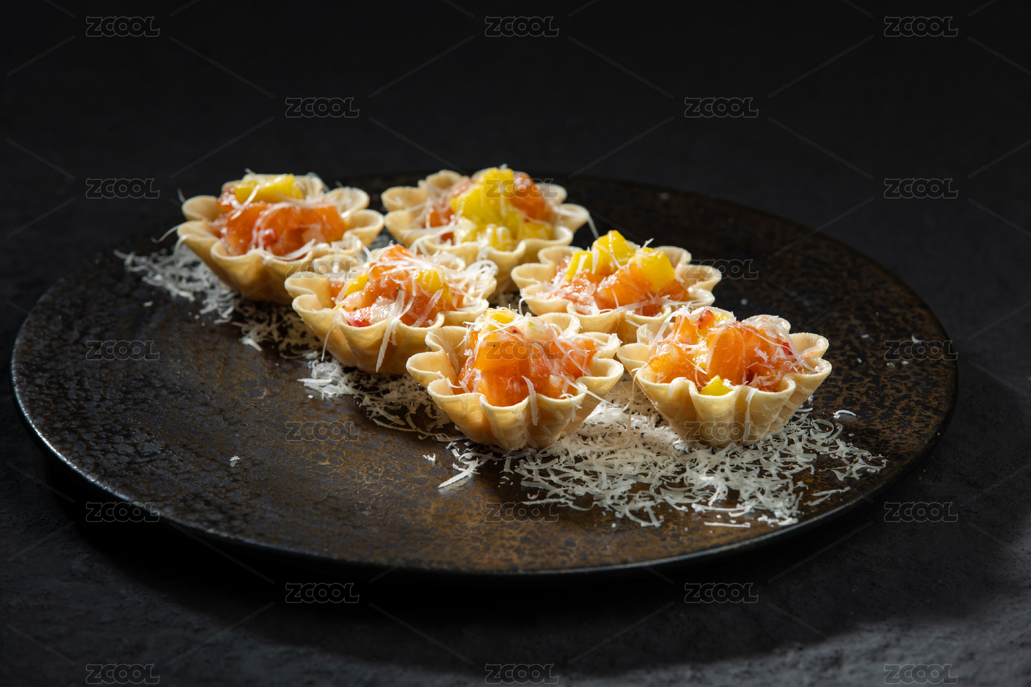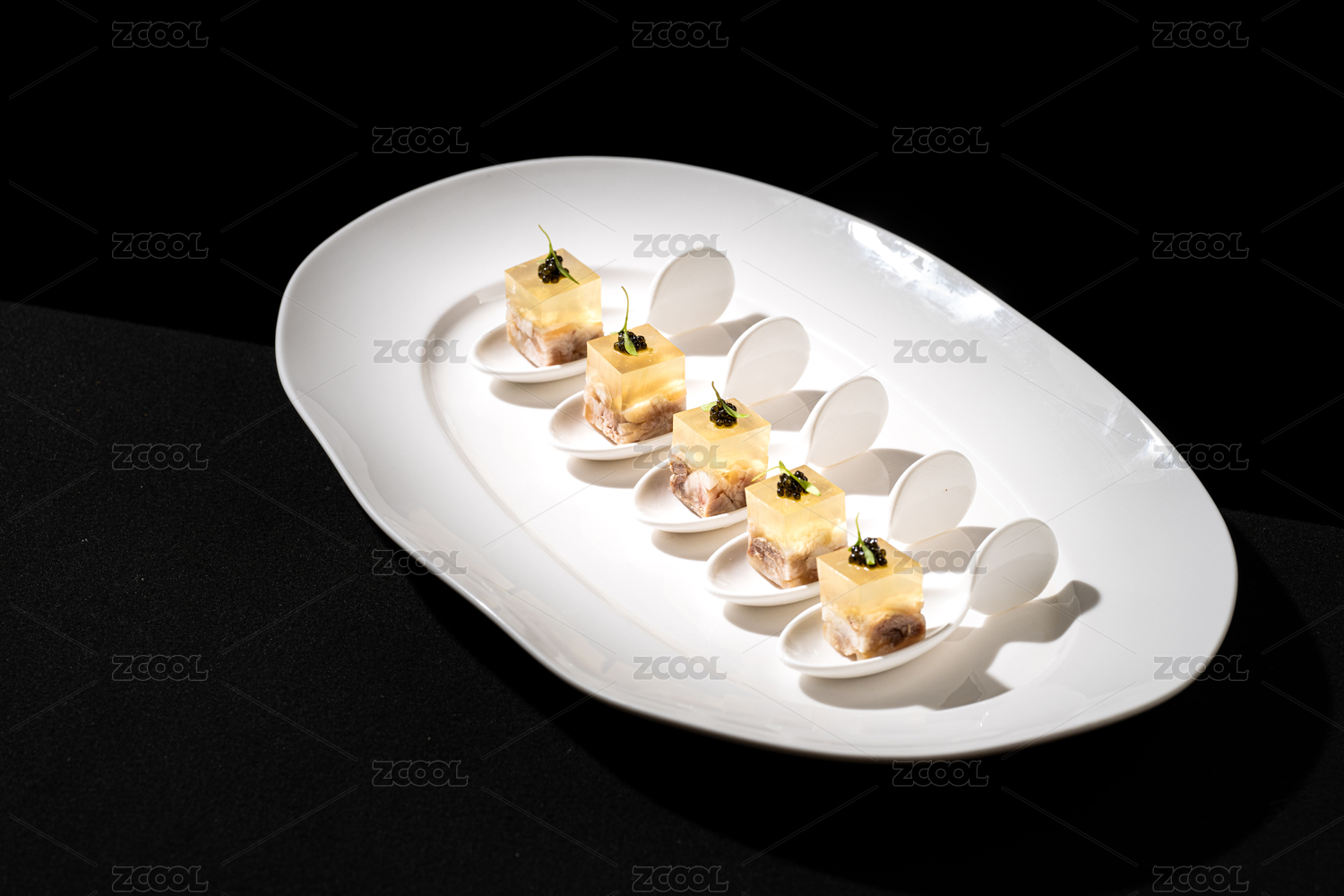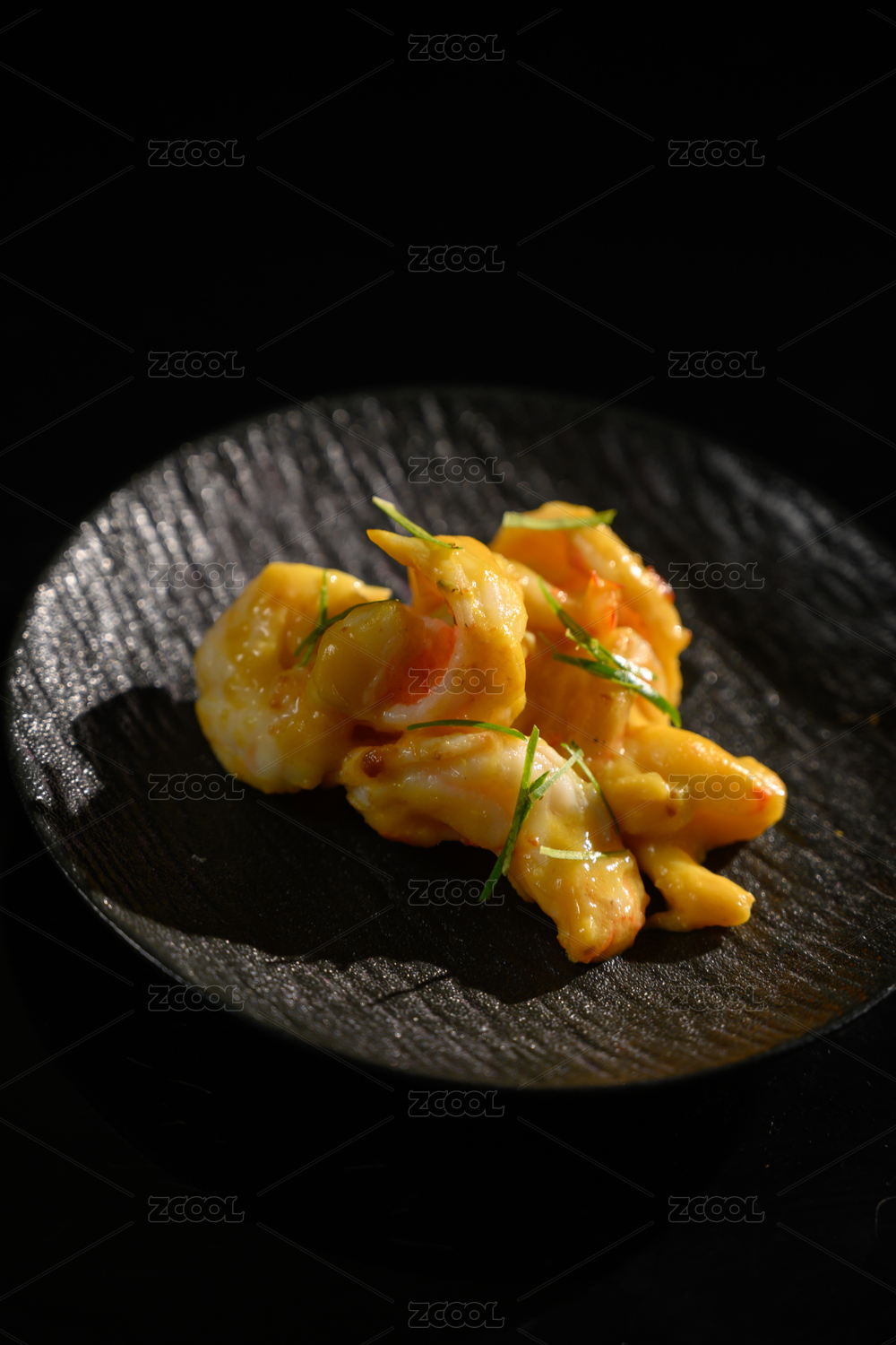 桌面上的盘子里的美味可口的麻辣蛤肉寿司