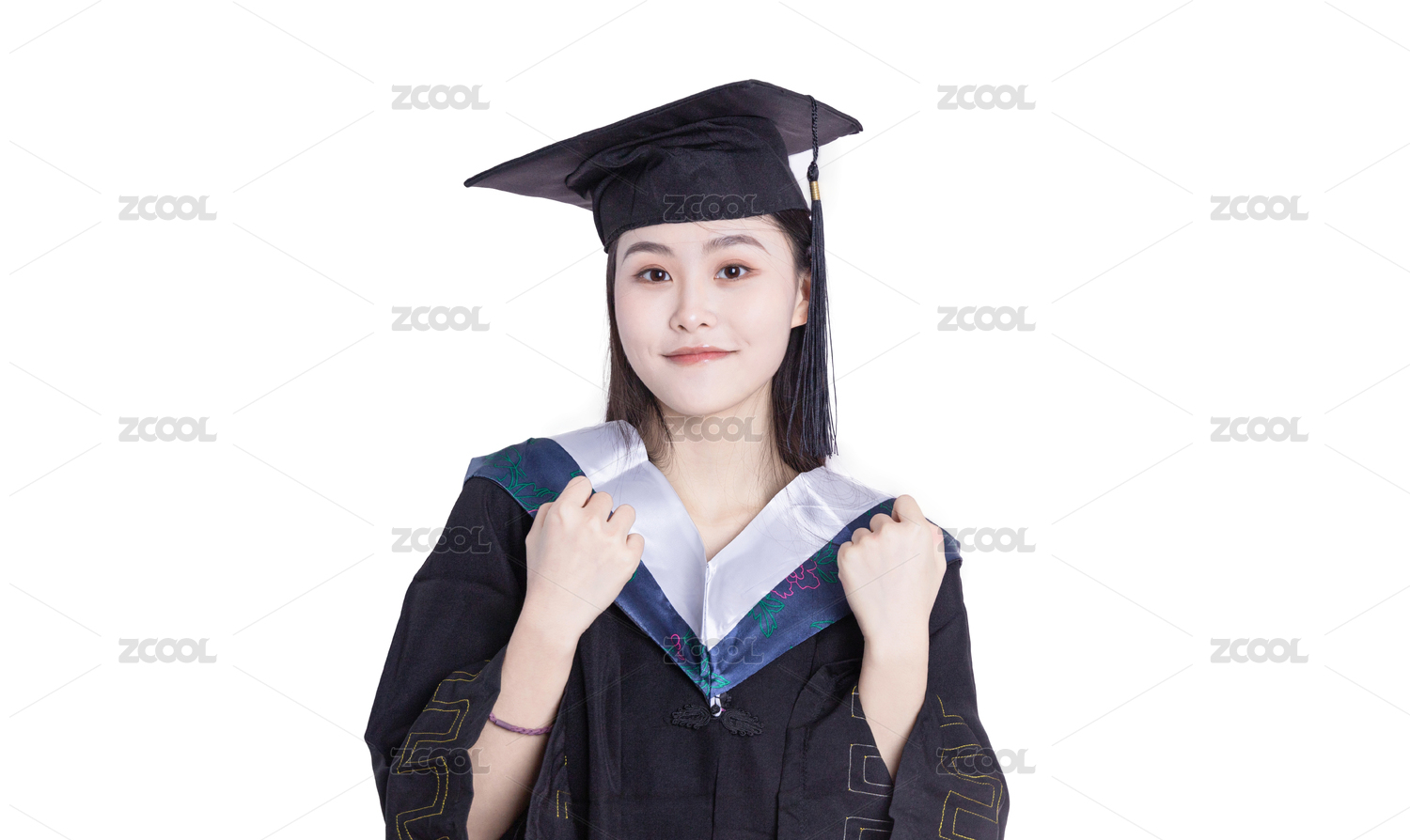 女大学生穿着学士服