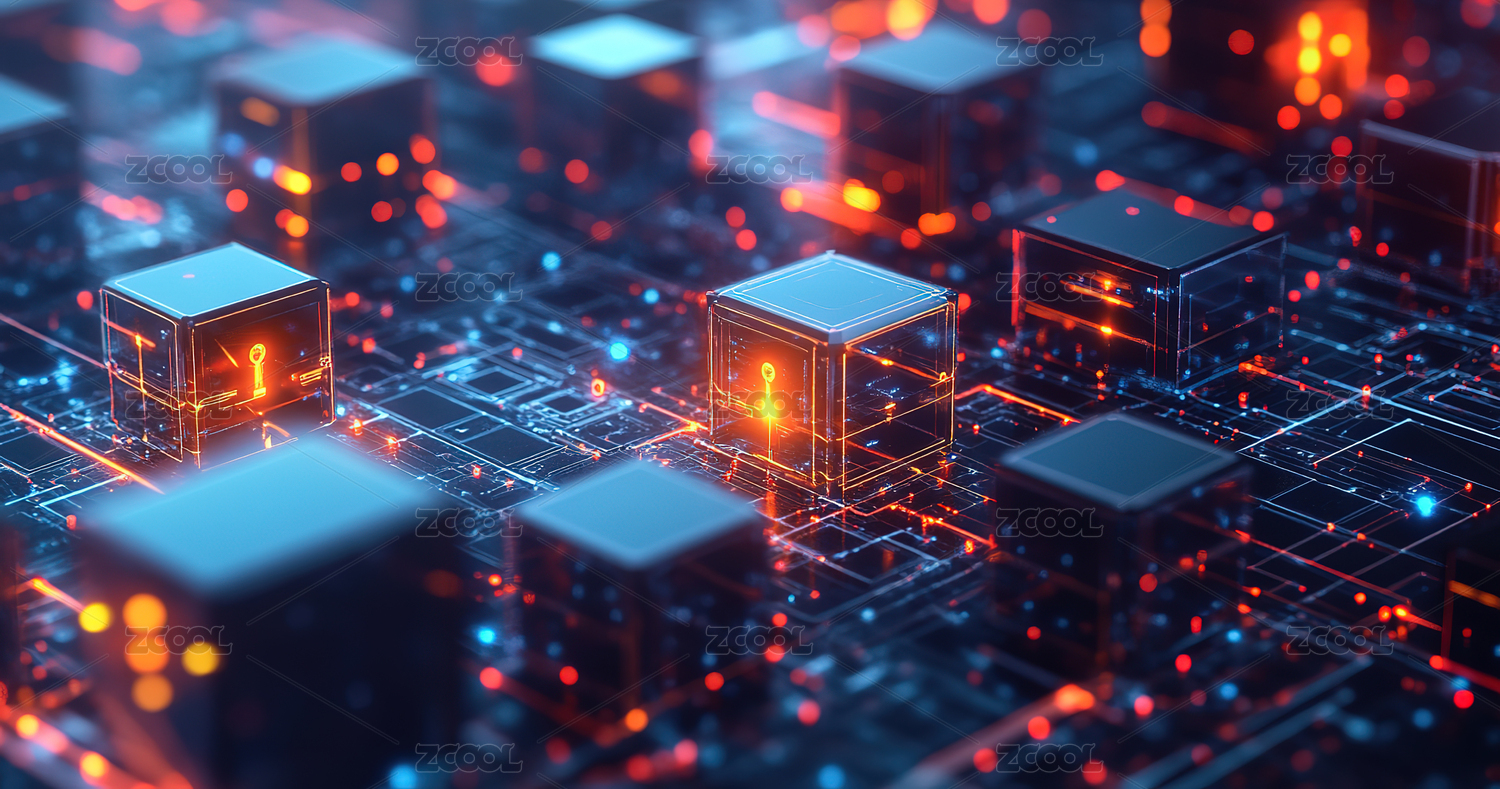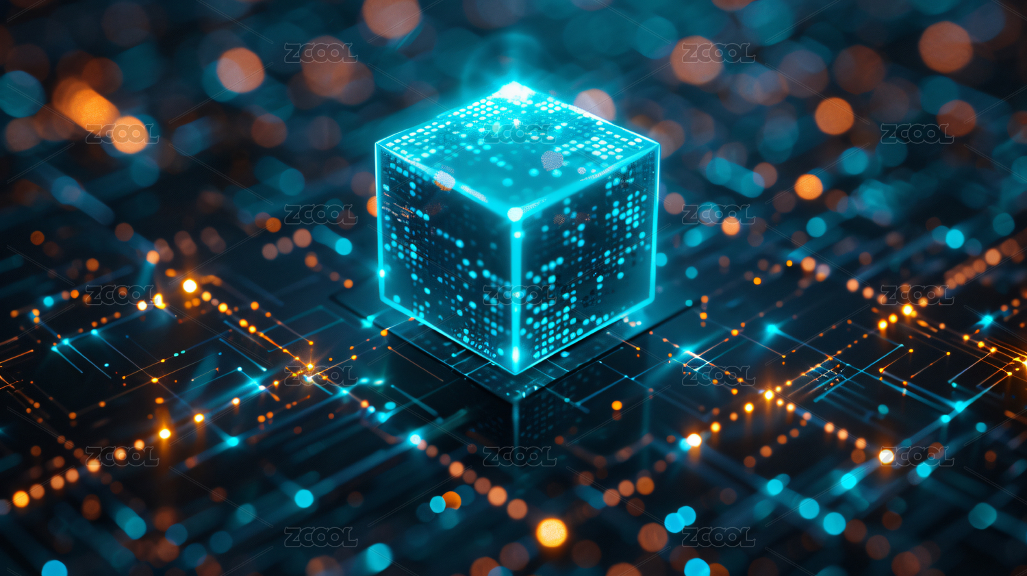 AI科技磨砂玻璃全息图魔方立方体大模型