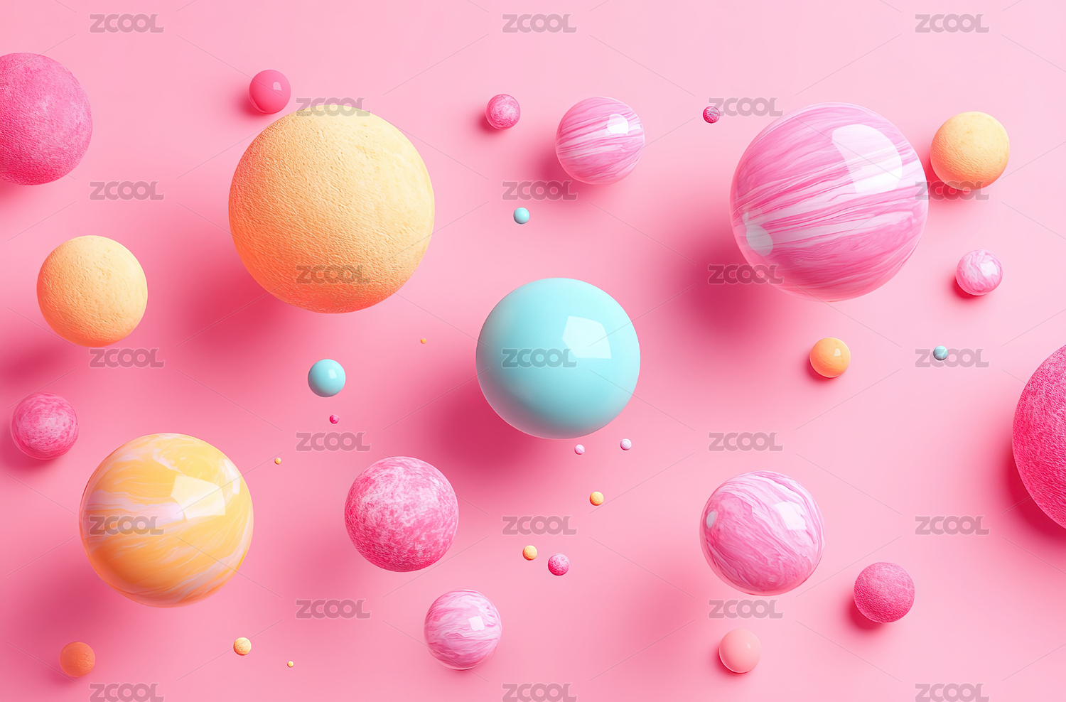 粉色背景悬浮彩色球体