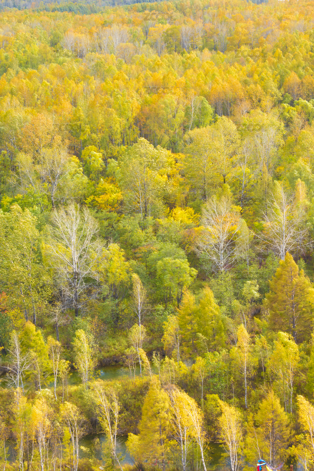 秋天阿尔山森林里五彩斑斓树木树叶自然风景