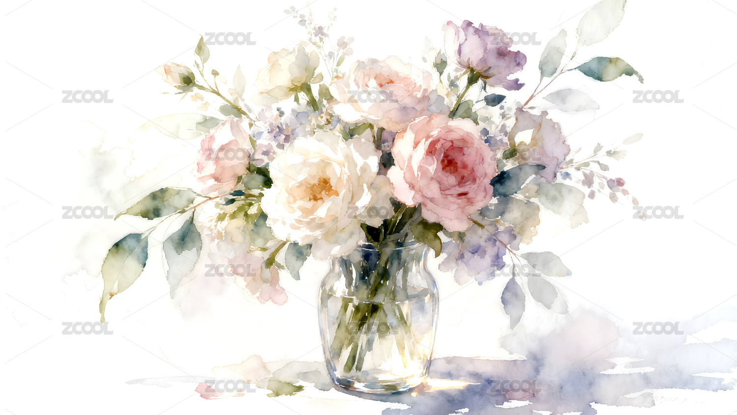 水彩花束静谧优雅