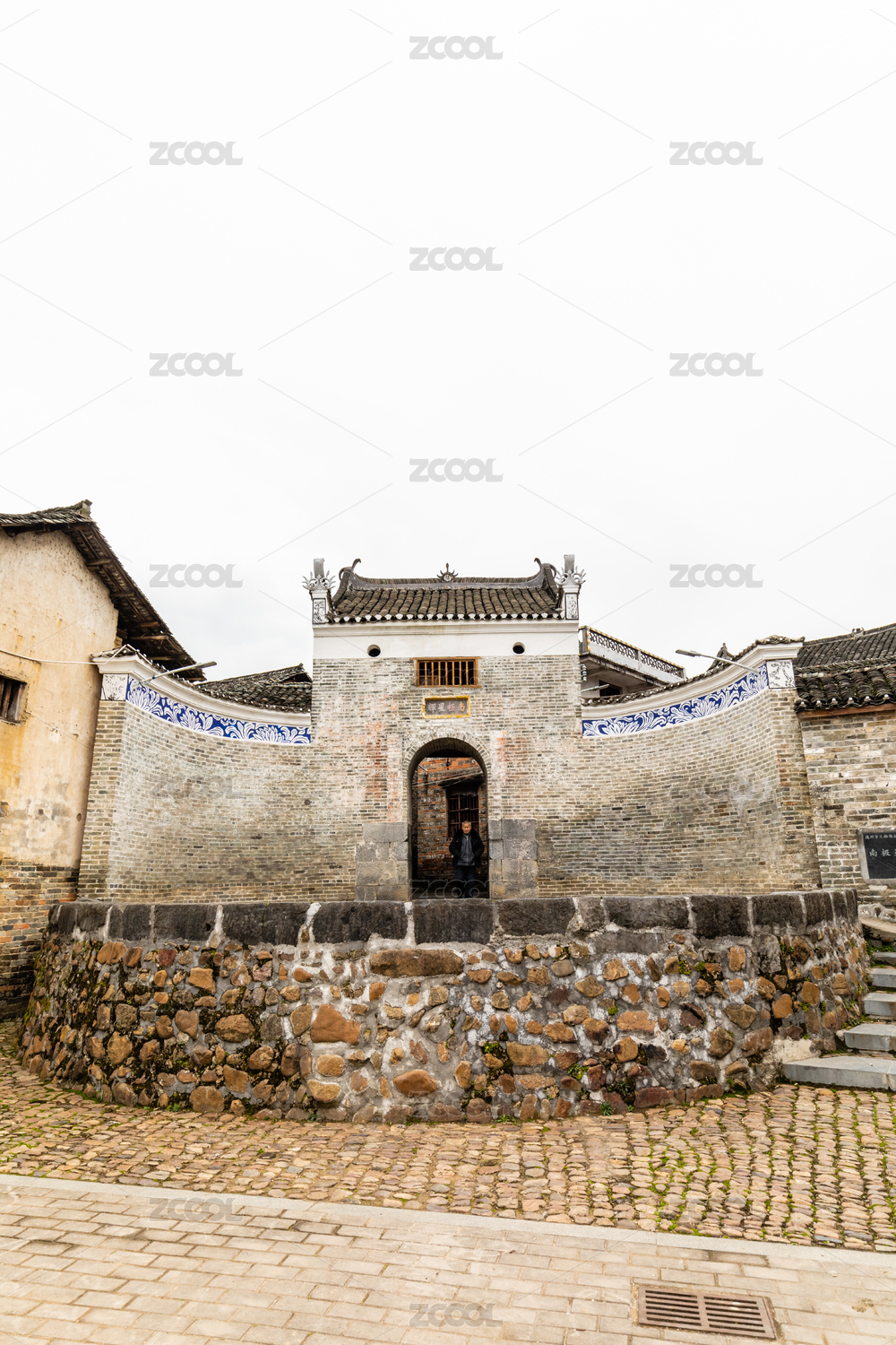 仿古建筑的青砖外墙及六边形水井