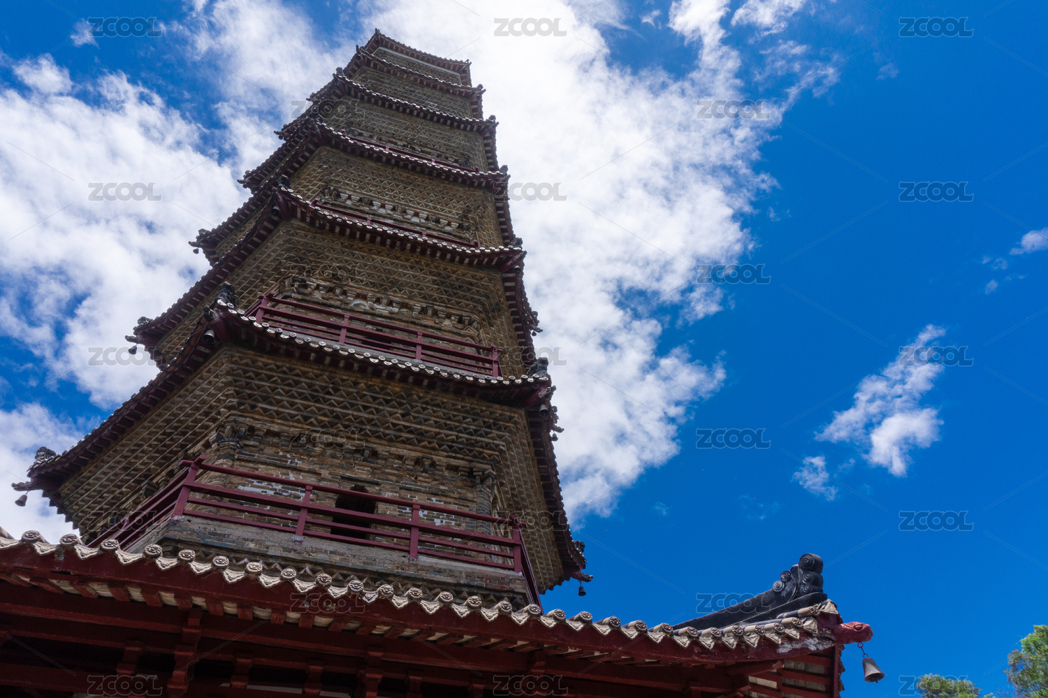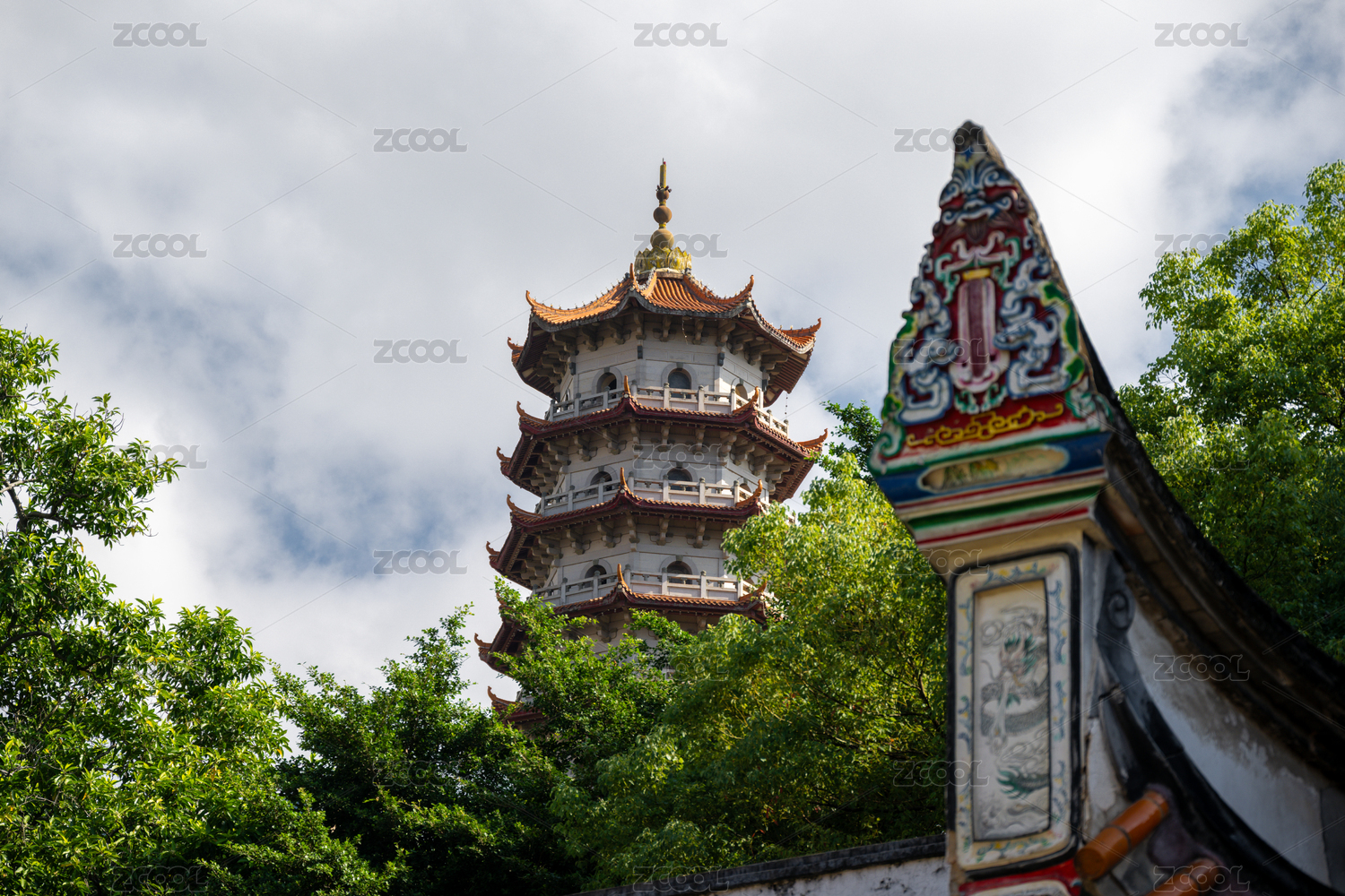 福建省福州市西禅寺古塔与彩绘屋檐的风景