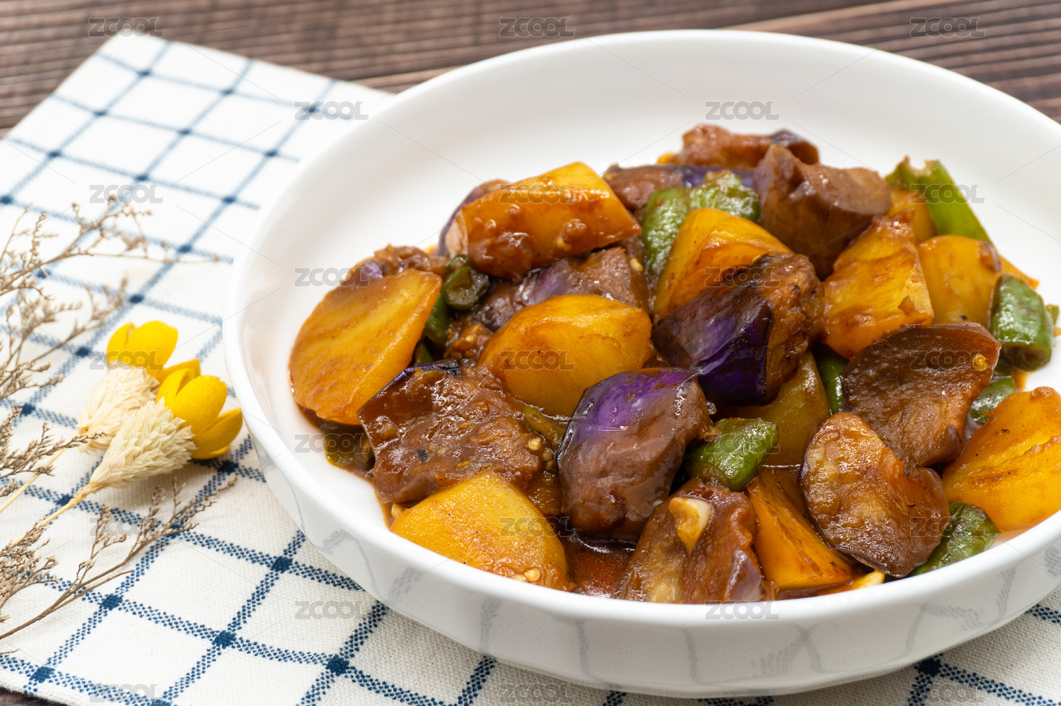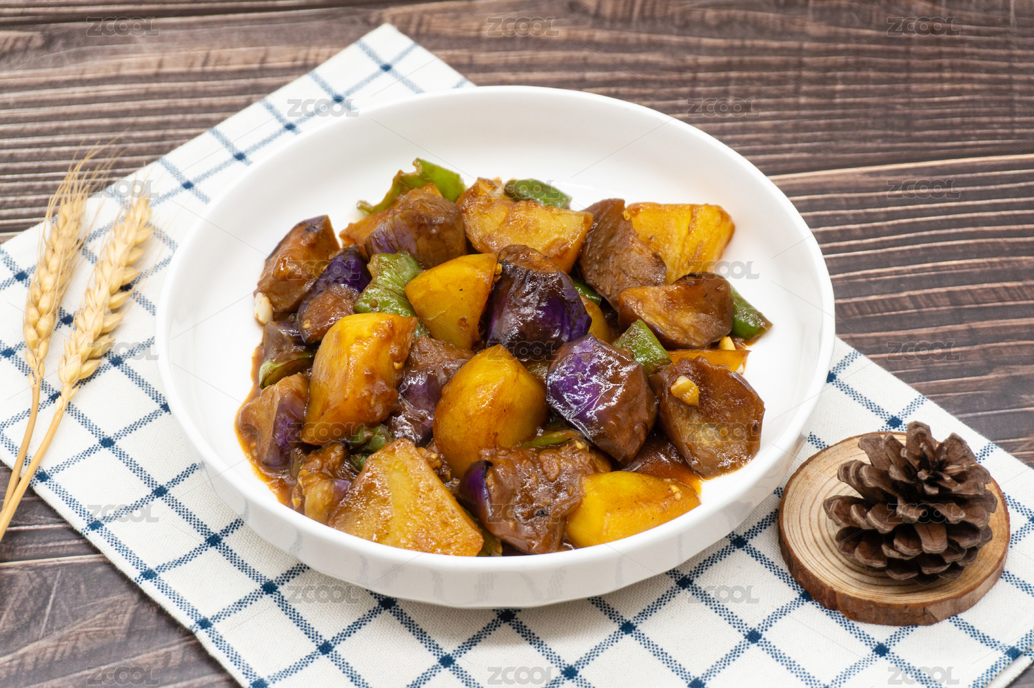 地三鲜,茄子,土豆,辣椒,东北,盘子,爆三样,炒茄子,炒三鲜,炒三样
