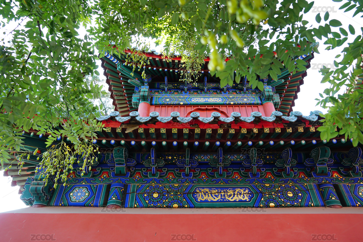 中国北京颐和园皇家古建一角——琉璃瓦瑞兽斗拱彩绘描金