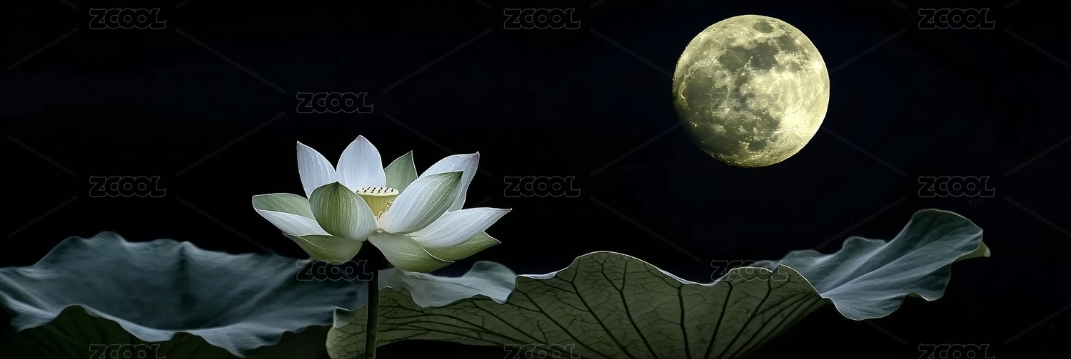 花,鲜花,唯美,自然,大自然,荷花,荷塘,月亮,夜景
