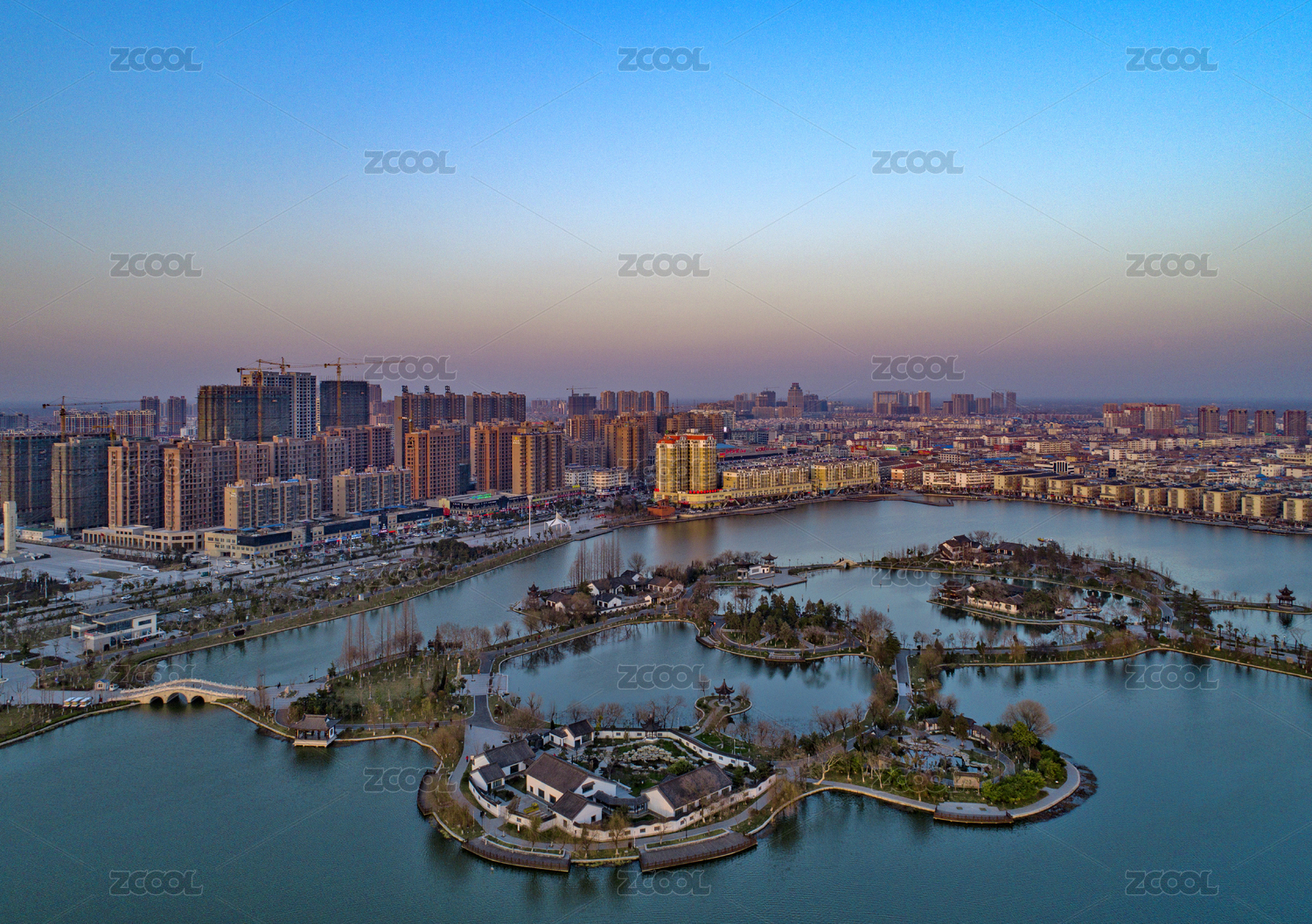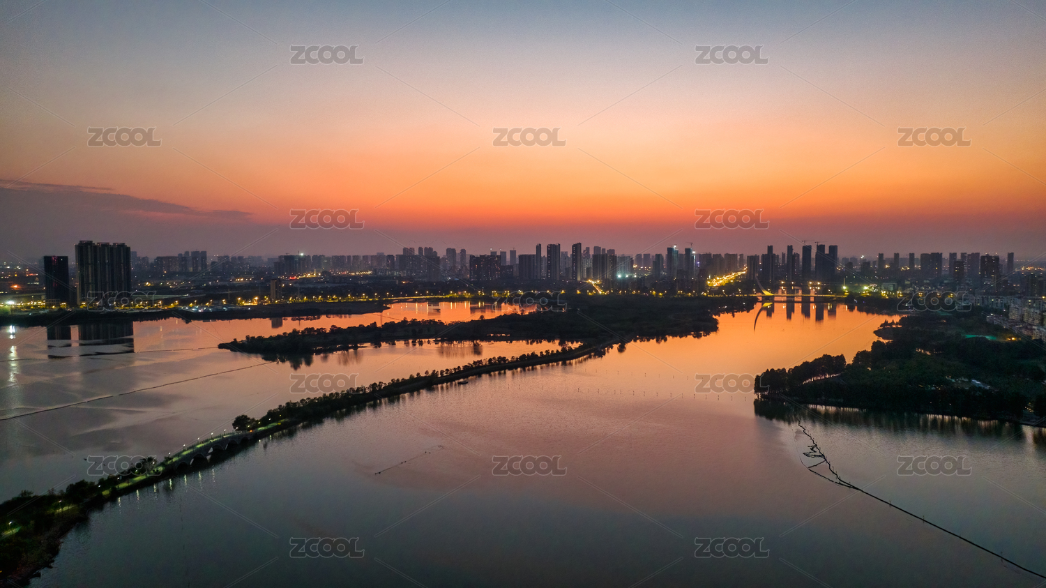 武汉东西湖区金银湖城市风光之傍晚时分