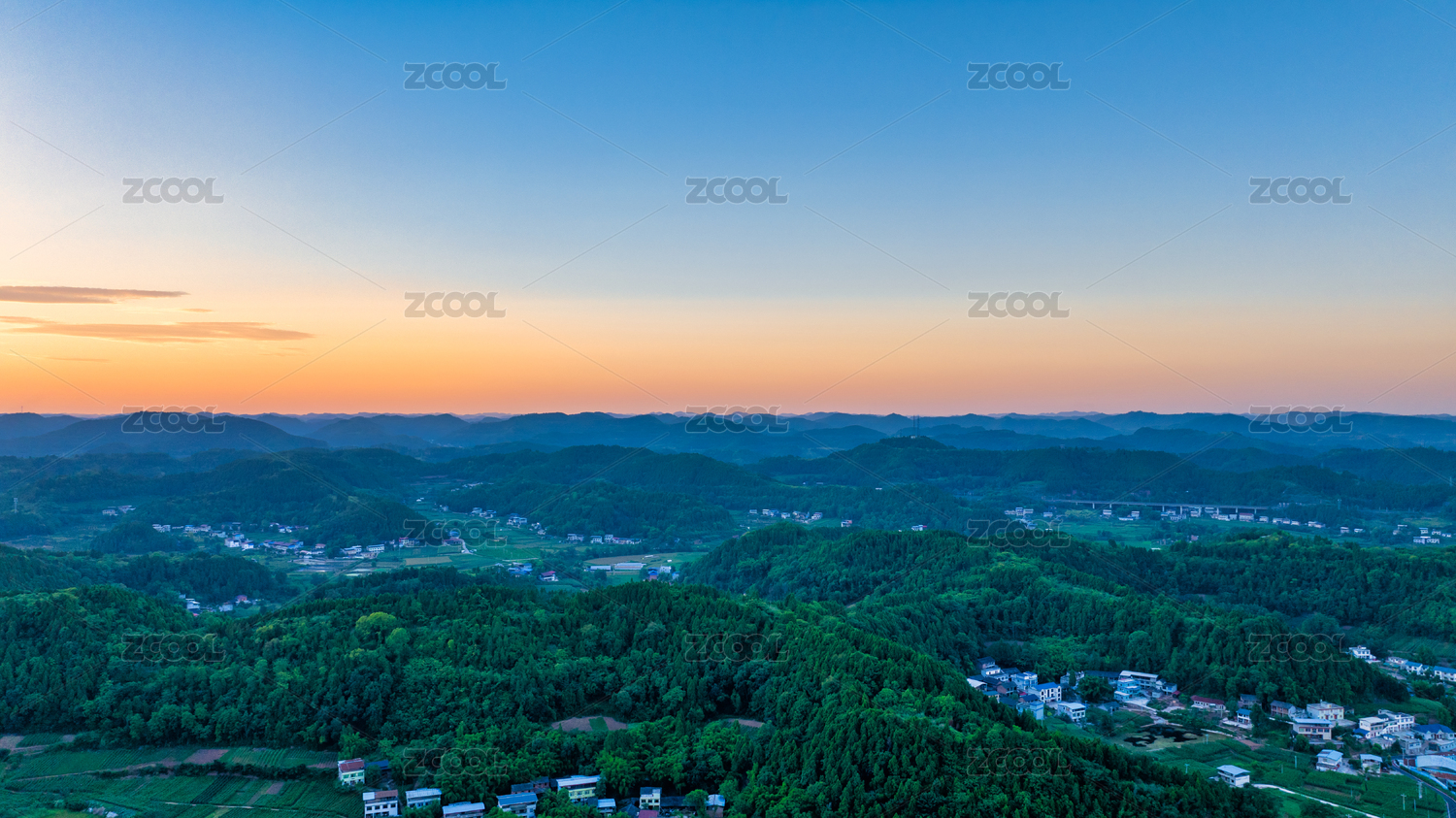 夕阳下四川德阳苍山镇丘陵地区的乡村农田