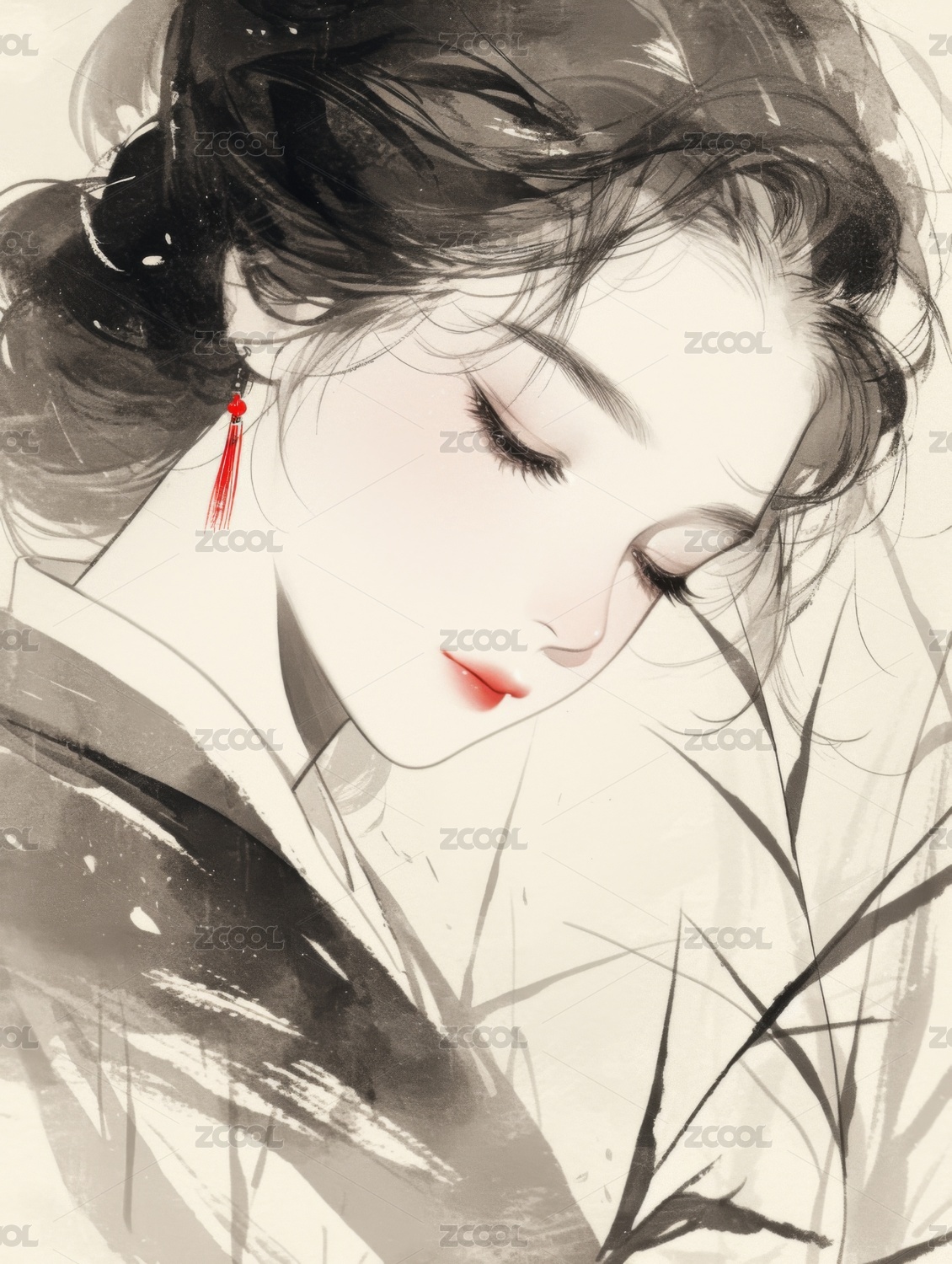 传统中国水墨画古典美女