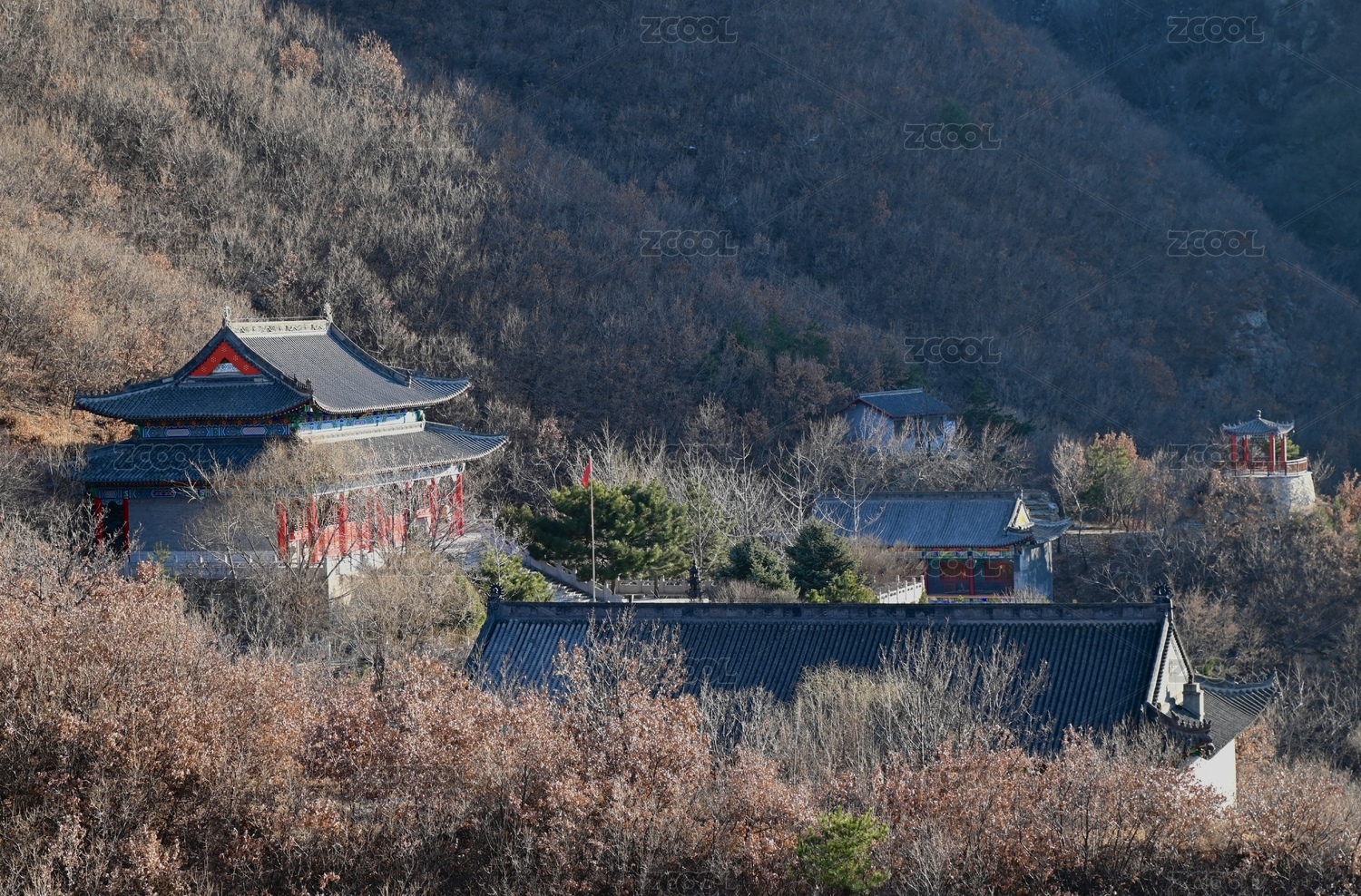 北京郊区秋天红螺寺山谷红叶夕阳凉亭