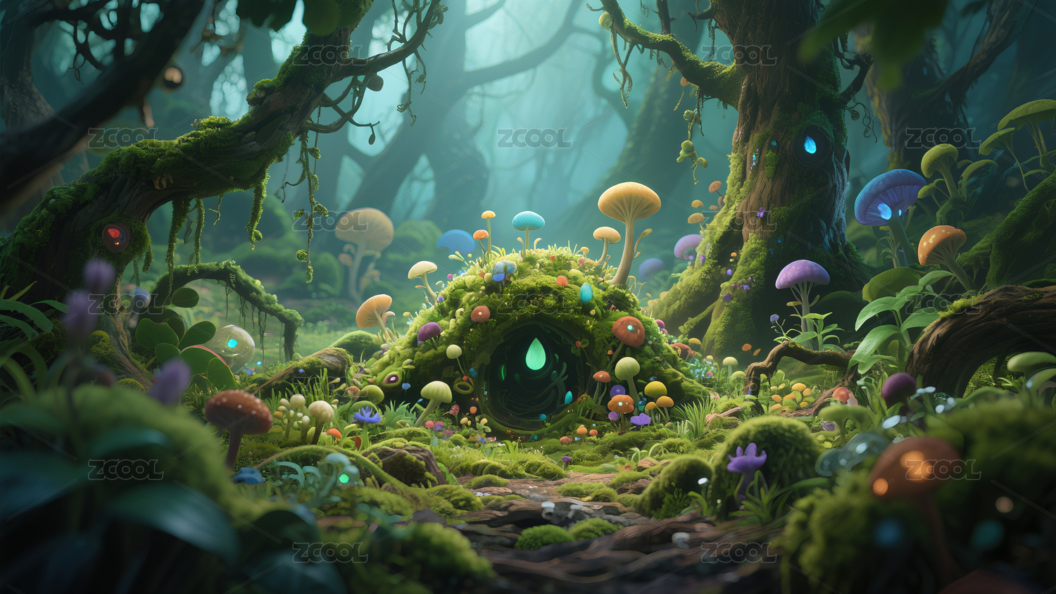 奇幻发光蘑菇森林
