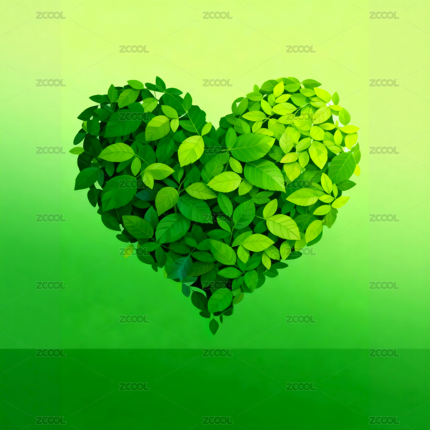 绿色叶子组成的爱心创意数字插画艺术