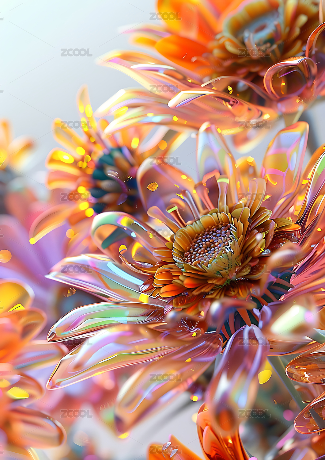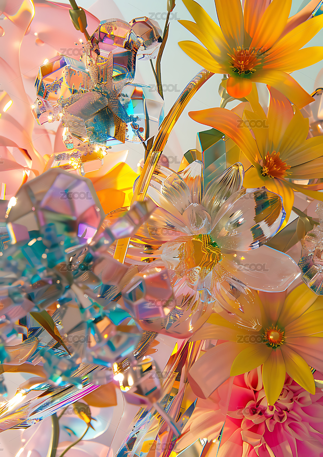 3d彩色透明玻璃花背景