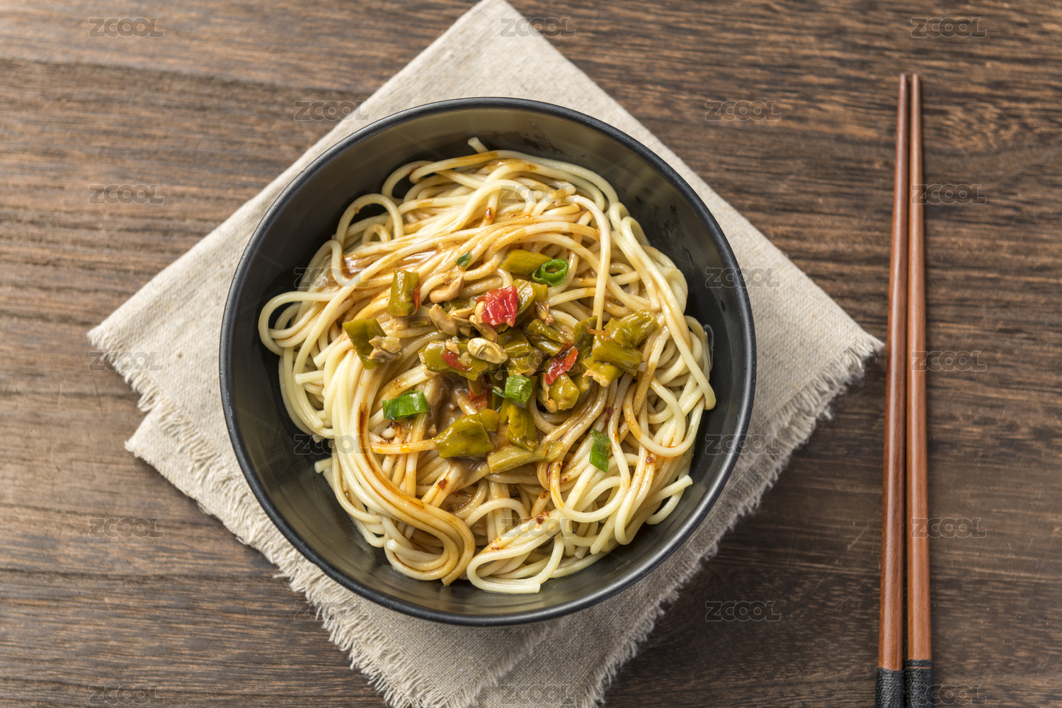 一碗武汉特色小吃热干面摆放在木桌面上特写