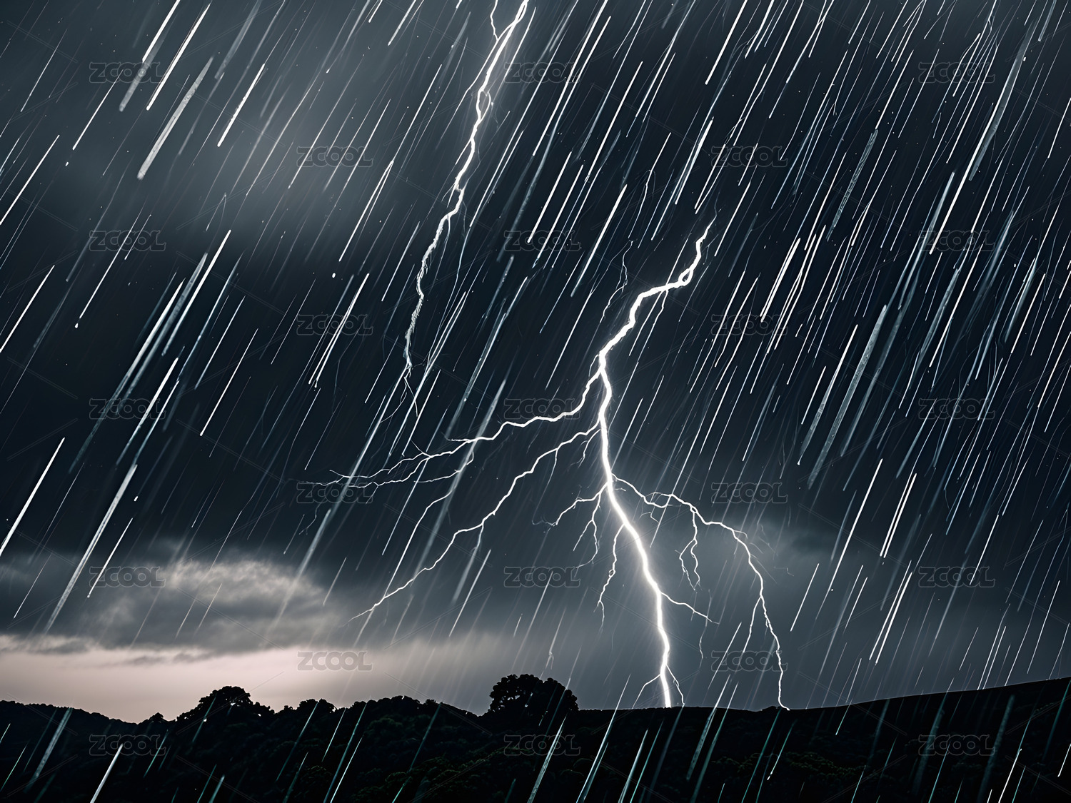 暴雨闪电下的孤树