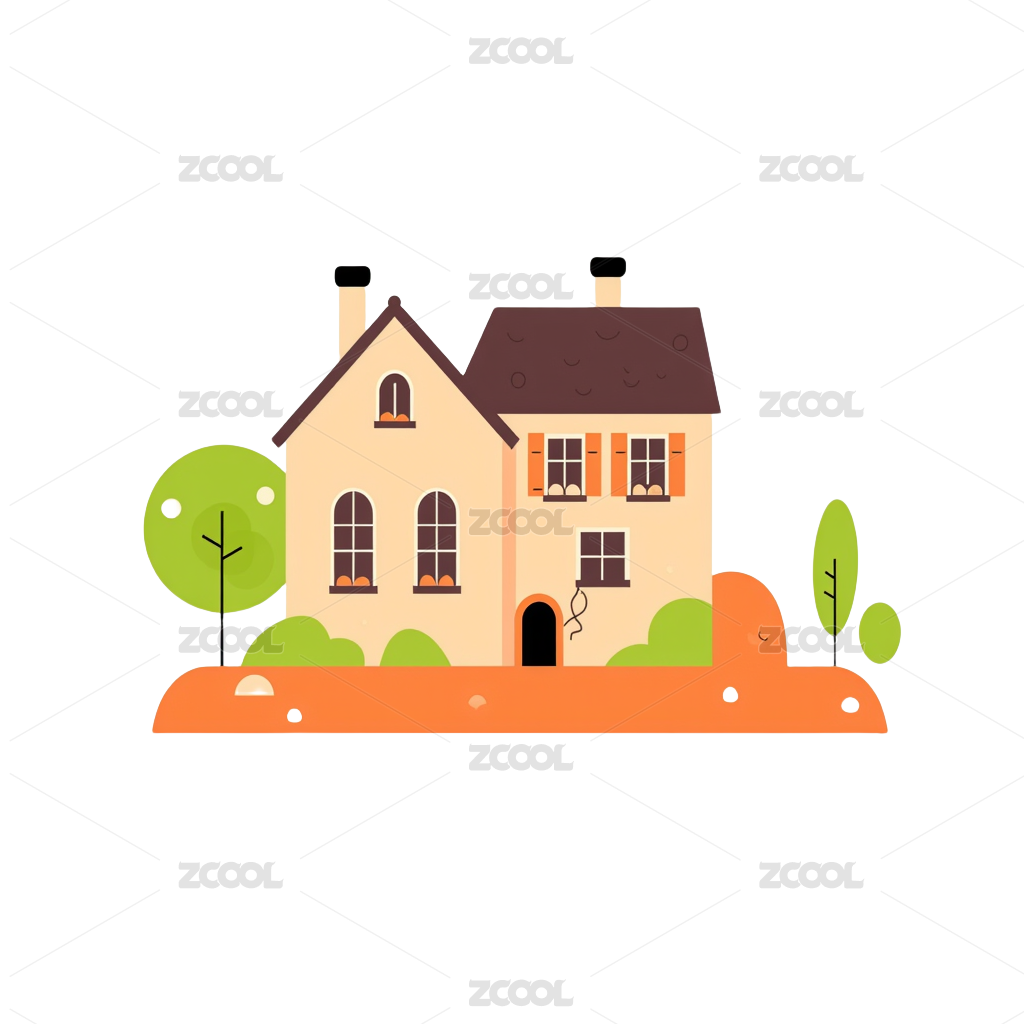房子,建筑,小屋,红色屋顶,野外风景,风景,建筑插画