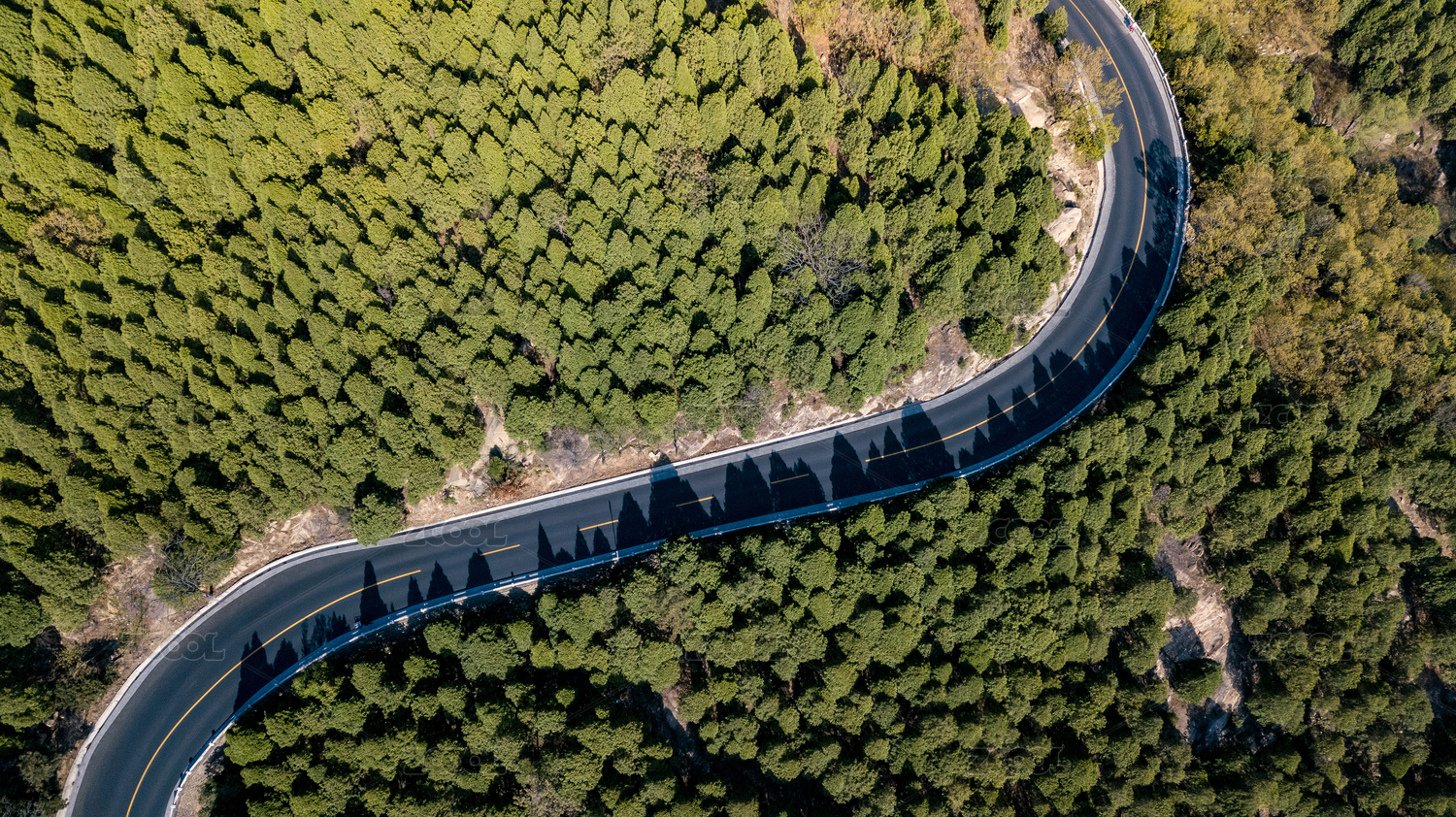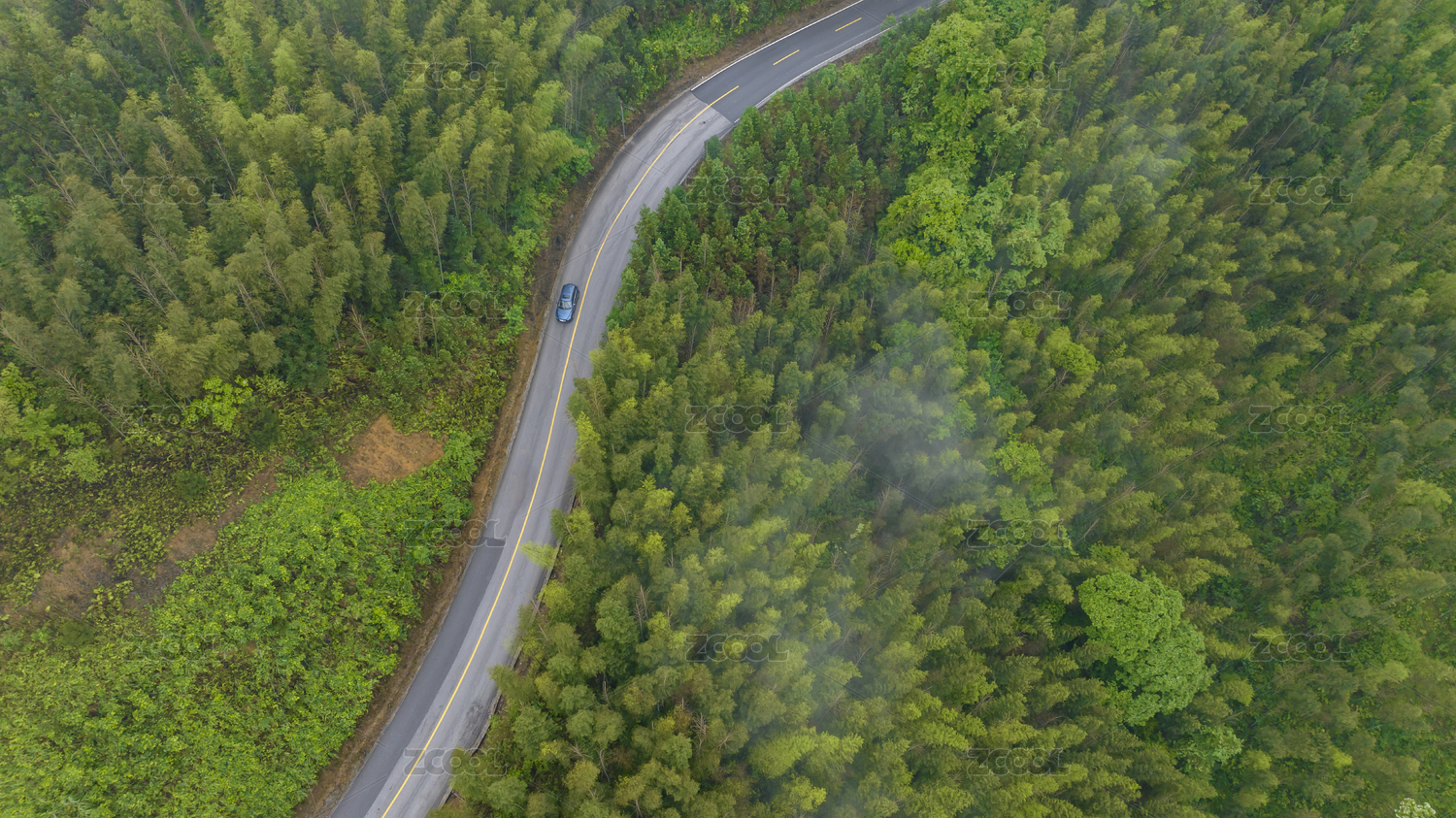 航拍,树林,公路,草原天路,汽车,自驾,上帝视角,绿色,森林,草