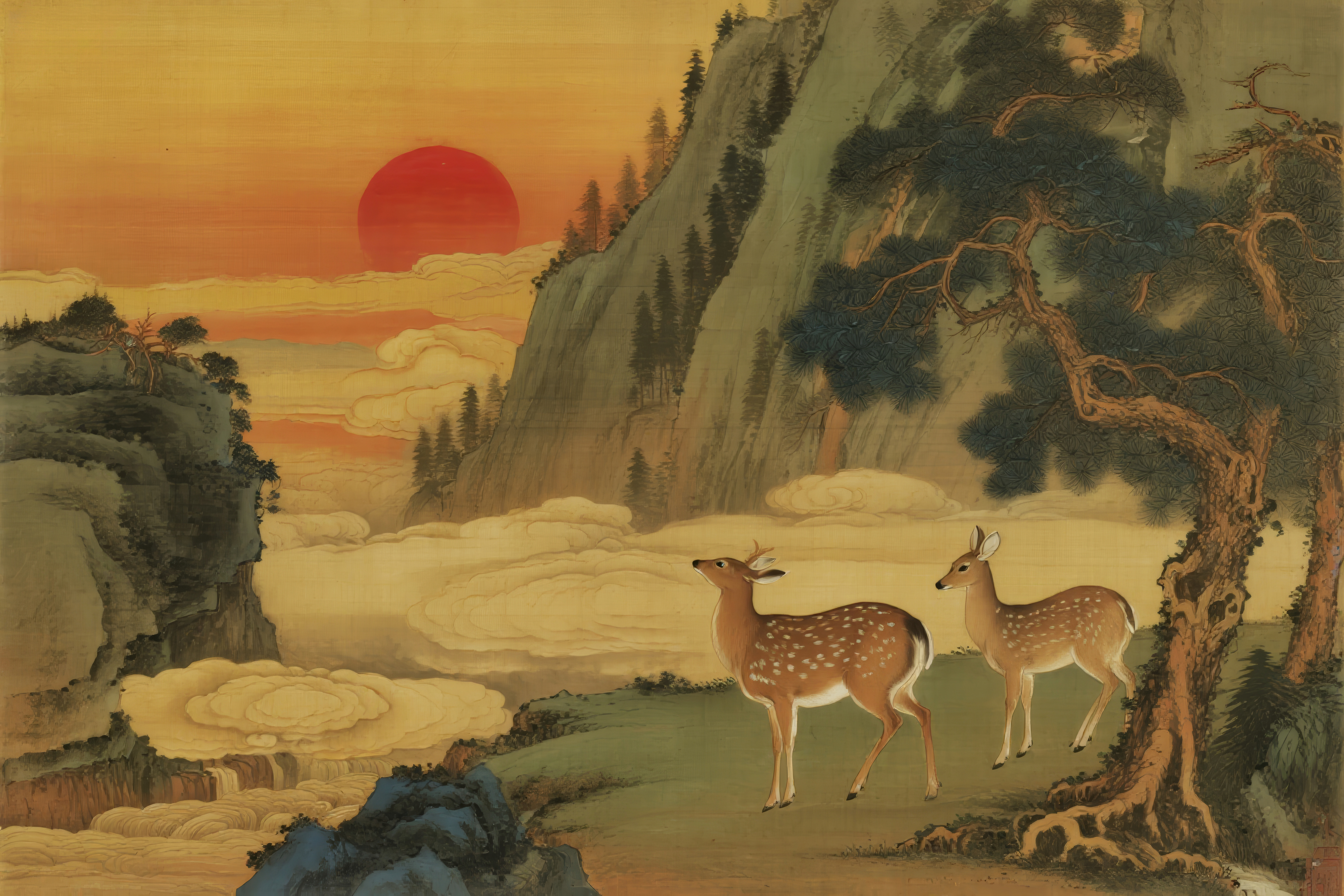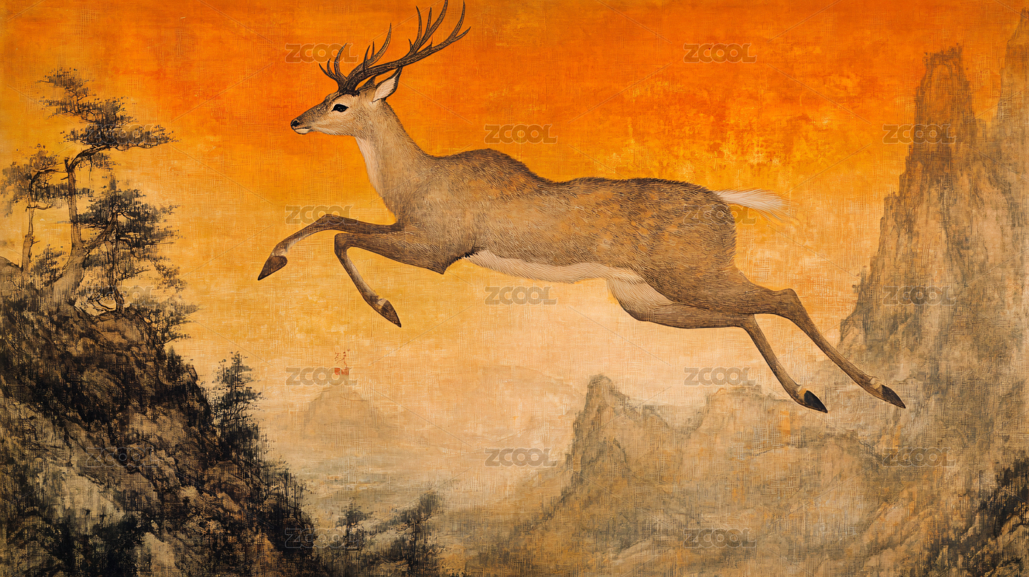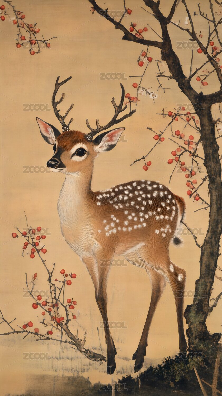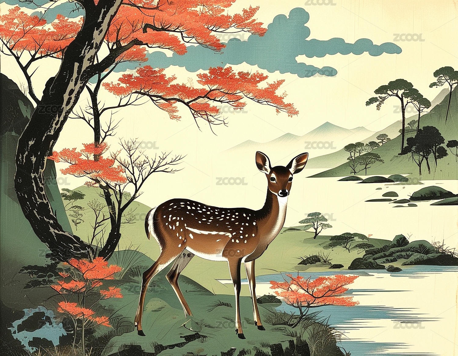 AIGCFG01,浮世绘,动物,日本,古代,精细,细腻,线条,白描,鹿角